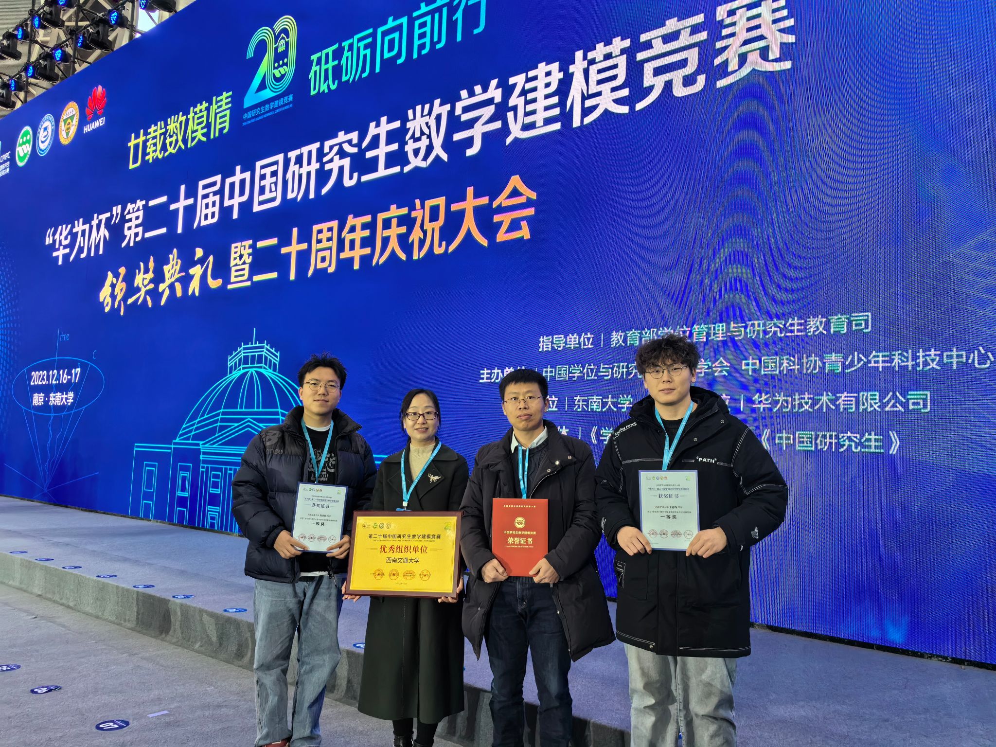 教师代表和获得一等奖的研究生代表在东南大学出席颁奖典礼。