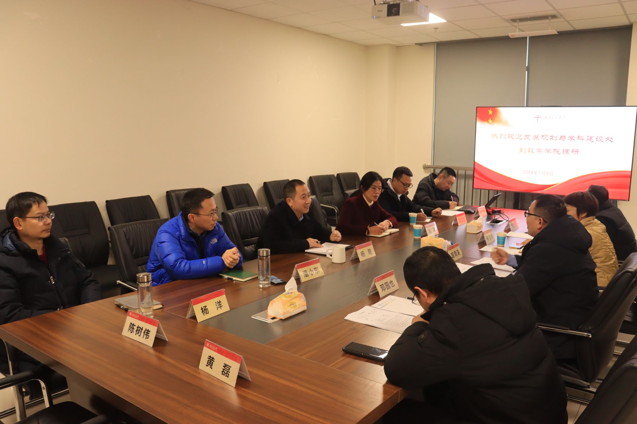 1月9日下午4时,发展规划与学科建设处处长胡海涛、副处长何诣寒、政策研究与改革办公室副主任任乐、学科建设办公室副主任黄强一行到网飞猫