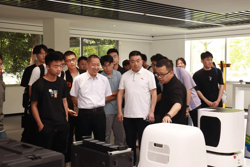 而后,谛达诺科技有限公司的工作人员采用互动演示的方法,带领数院师生深入了解该公司研发的机器人、智能形体镜、智能跳绳等一系列智能产品。针对这些产品中所蕴含的数学原理和知识向同学们作了简要介绍,充分激发了同学们探索数学、运用数学的热情,也坚定了同学们将理论知识转化为实际成果的决心。