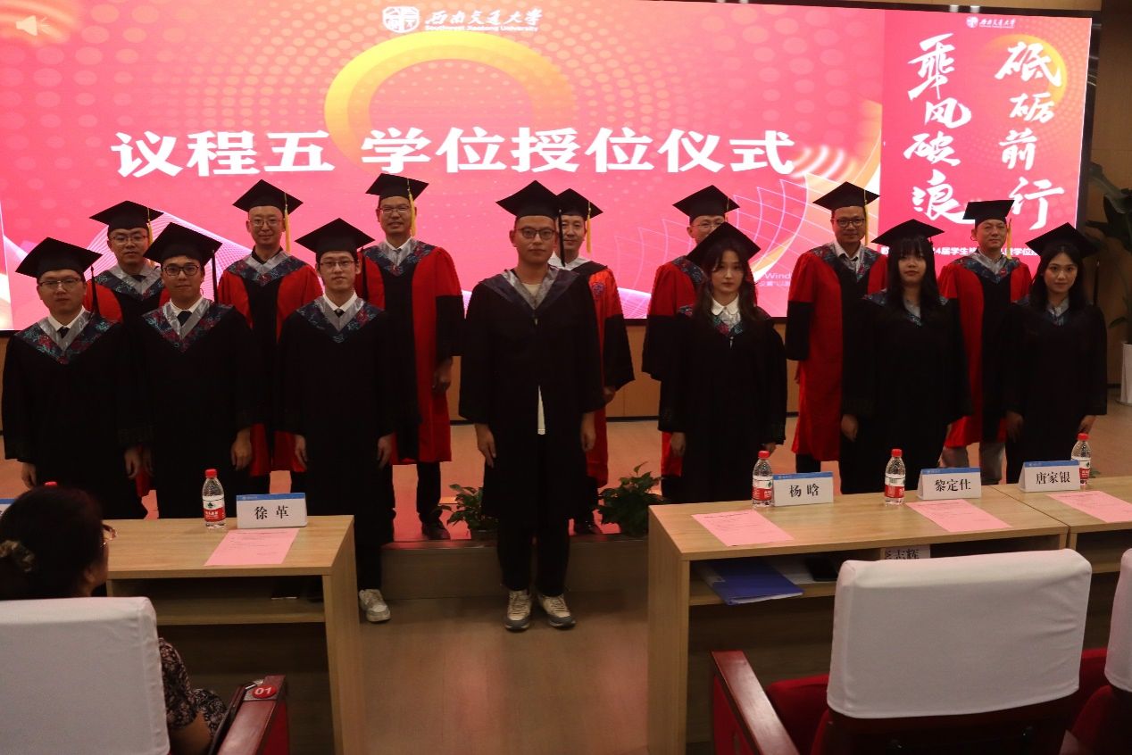 学术分委会导师为毕业生逐个授学位礼并合影留念。