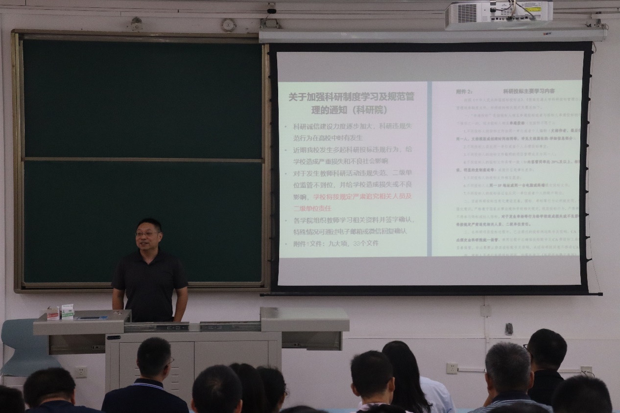 王璐副院长针对科研相关工作展开论述,敦促教师重视科研投标规范,杜绝“搭便车”行为,鼓励教师要提高申报项目质量,做好项目研究的转型与改变,在保证项目高质量的同时稳步提高申报数量。
