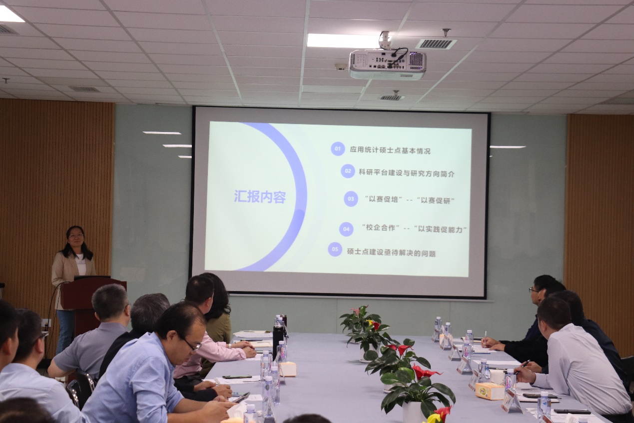 接着,成都信息工程大学李勇教授与张凤教授作了了主题为“以赛促配”和“校企合作”理念下的应用统计硕士培养与学科建设的汇报。他们从应用统计硕士点的基本情况出发,介绍了科研平台的建设与研究方向,提出应以赛促研,以实践促能力,并指出硕士点建设亟待解决的问题。