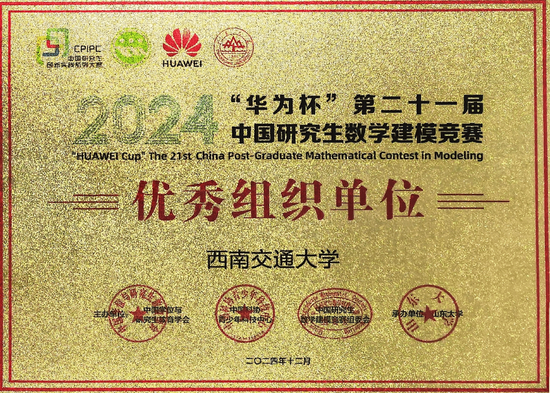 再次获得“优秀组织单位”称号。其中,一等奖的获奖队伍中,“草原三恶霸”队在C题8947支队伍中取得了第4名的优异成绩,受组委会的邀请在颁奖前进行了交流分享。