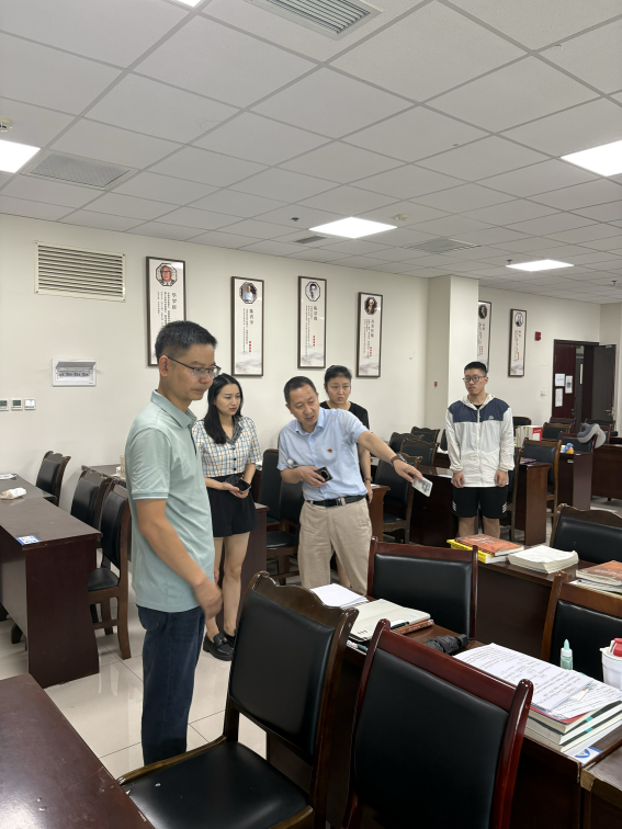 检查组先后走访了数学中心、教师服务中心、系部办公室、数学学习中心、学工组、工会之家、教师工作间、博士后工作间等区域,就室内的安全用电等做了详细检查,并叮嘱假期离校前做好防火防盗工作,要求最后离开的老师关好室内电源和门窗等。接着,检查组来到学院自习室与研究生研修室,仔细排查了室内安全隐患,并就室内的桌椅摆放和日常管理工作提出了具体要求,还特别强调了做好毕业学生座次的更新工作以及假期值班教师的应急预案。