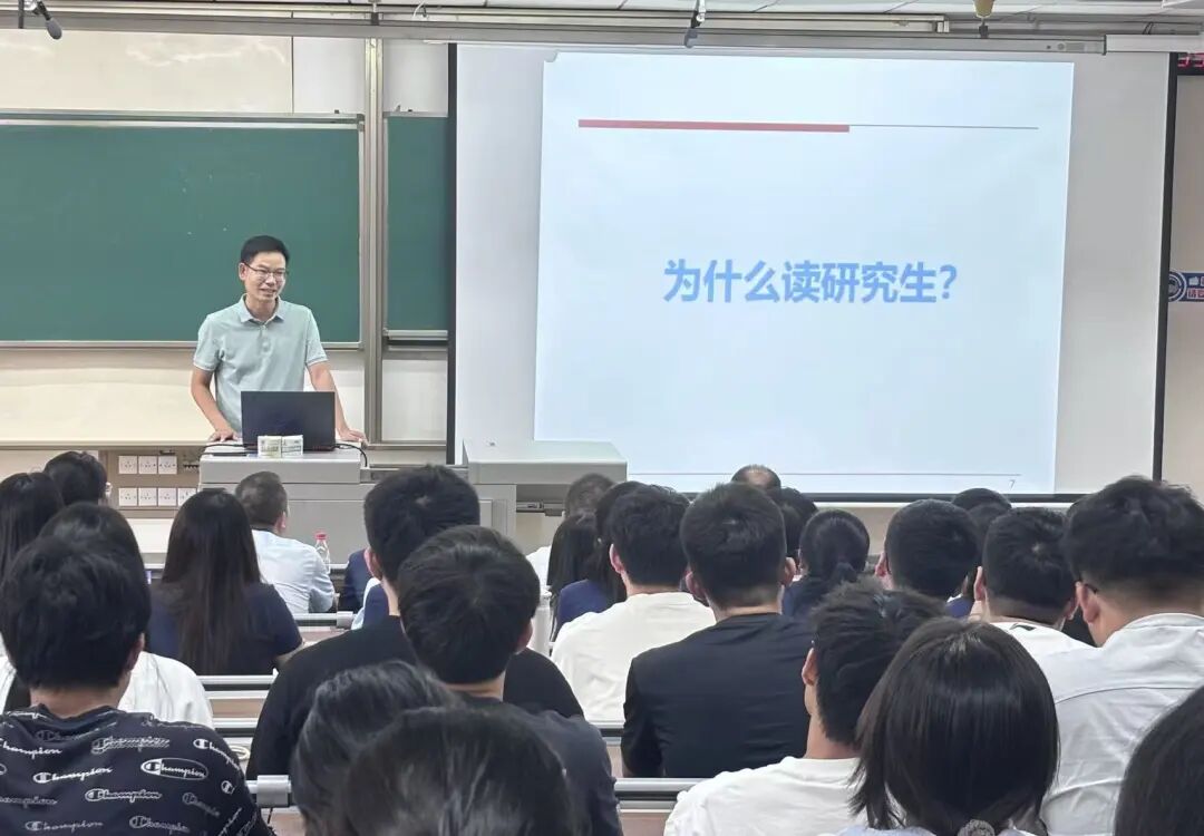 杨洋围绕“为什么读研?”“读研过程中需要做什么?”“怎样成为一名合格的研究生?”三个核心问题,详细介绍了硕士研究生和博士研究生的培养方案,引导同学们明确清晰的学习目标与规划。杨洋强调,研究生应学会自主学习,积极参与科研项目和学术交流,主动培养自己提出问题、思考问题和解决问题的能力,提升自己的综合素质。同时,杨洋还提醒同学们严格遵守学术规范、杜绝学术不端。