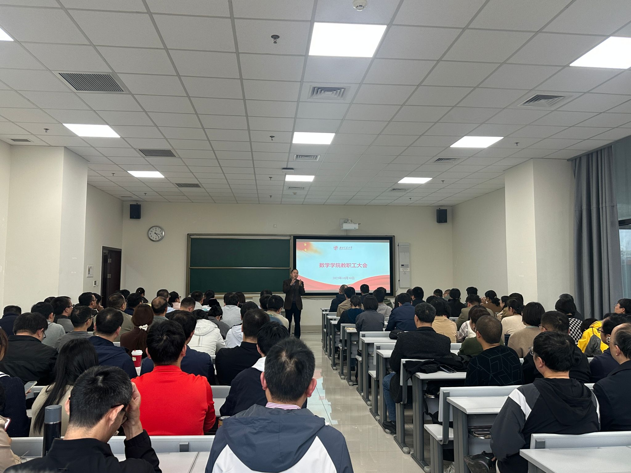 教职工大会在犀浦校区X30610顺利召开,会议由学院院长杨晗主持。