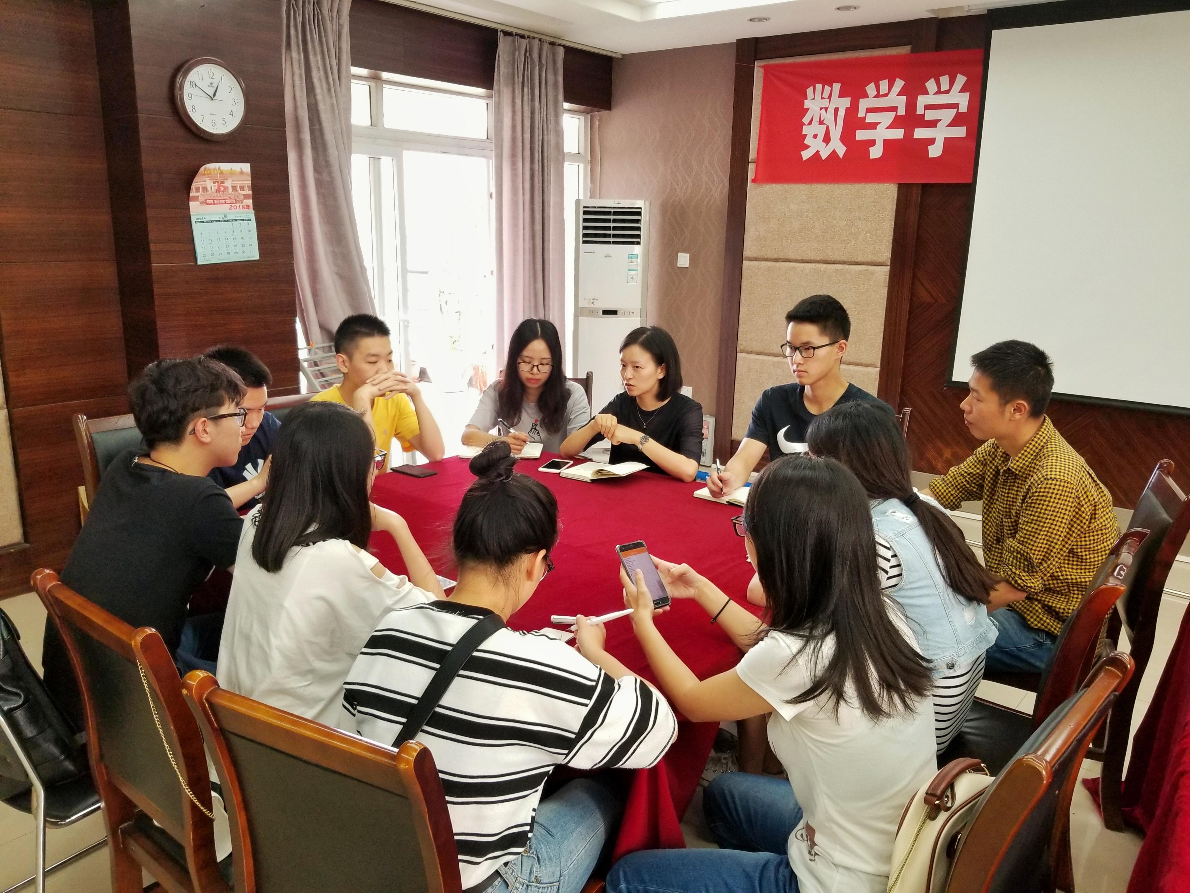 团委书记邓思然老师主持,与会人员有敬思惠、丰世隆、钟义婷三位辅导员及网飞猫