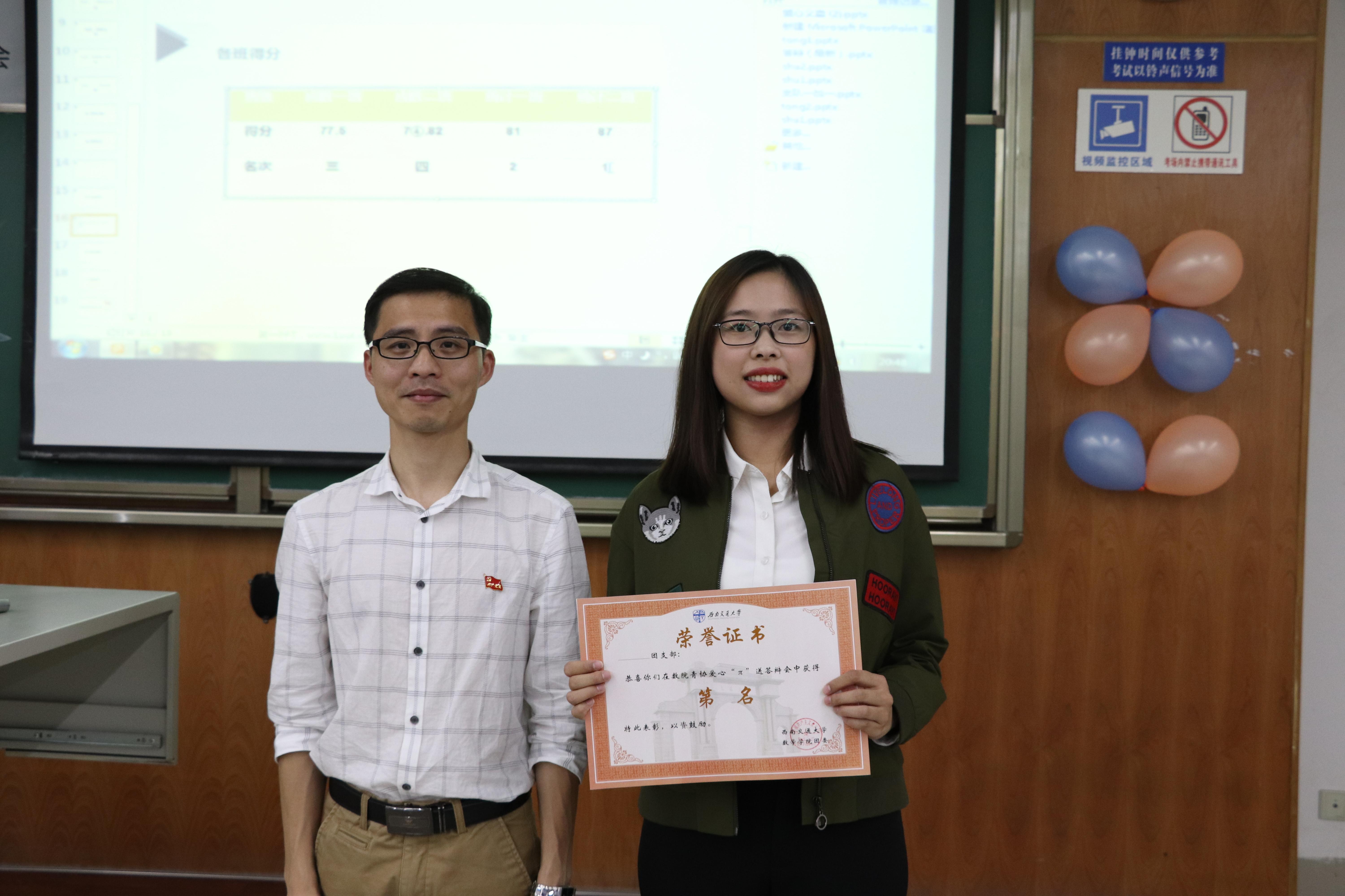 党委杨育鸿副书记,数院青协指导老师敬思惠老师,辅导员丰世隆老师,西南交大社团联合会黄梓幸理事,青年志愿者协会秦天宇主席、王汇川副主席,数院学生会、网飞猫中心