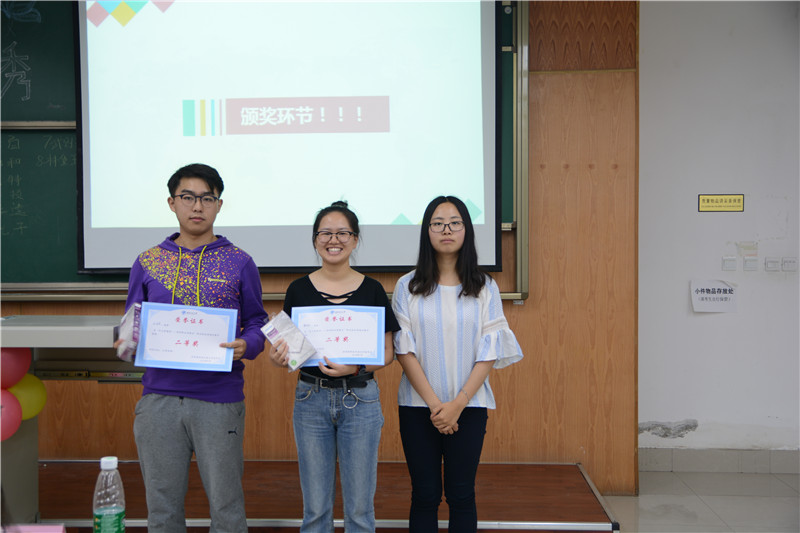 最令人期待的颁奖环节,主持人宣布杨思哲同学获得本次“交大梦想秀”一等奖,石润昊、谢欣洁同学获得二等奖,随后颁奖时,获奖选手们和评委老师进行了合影留念。