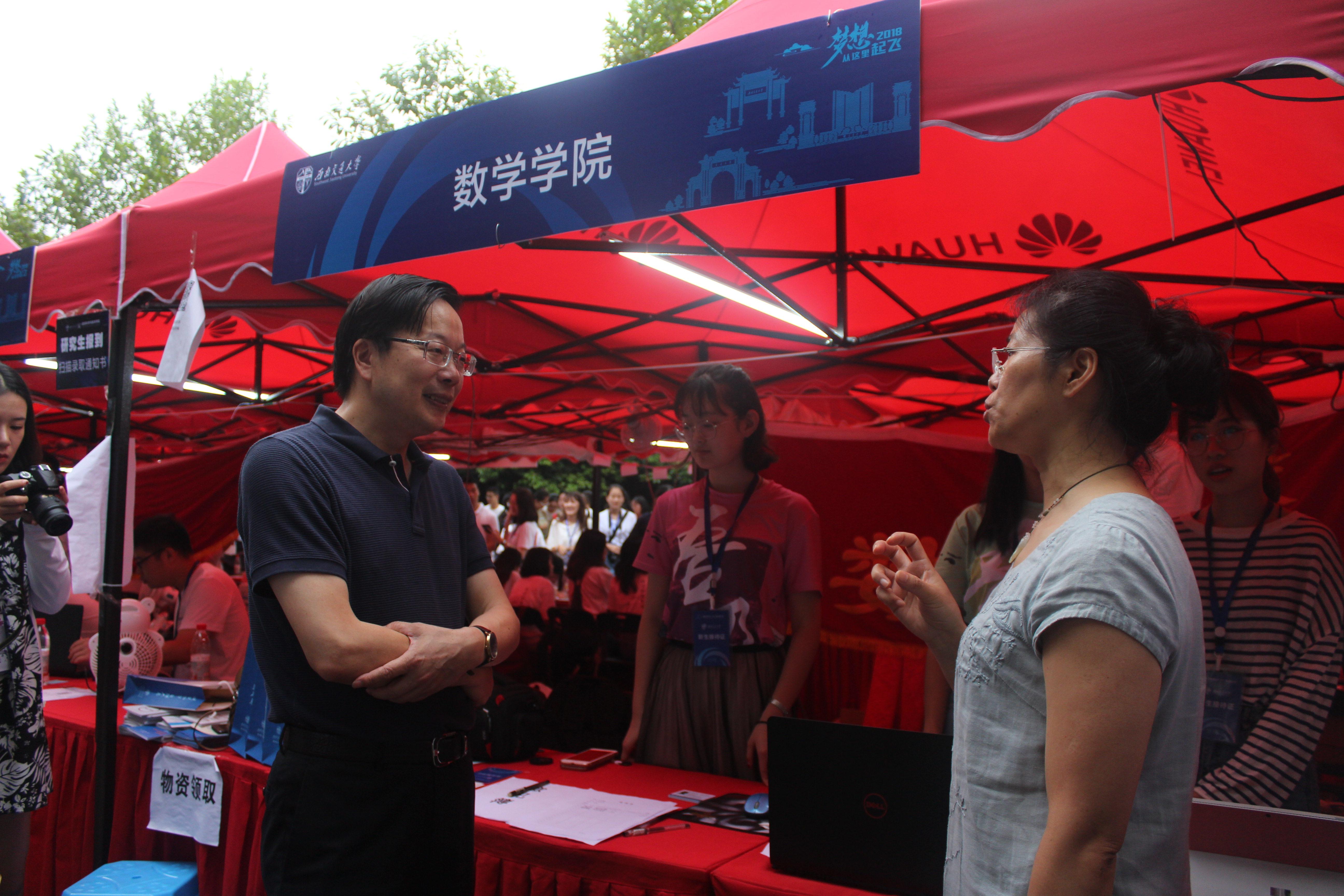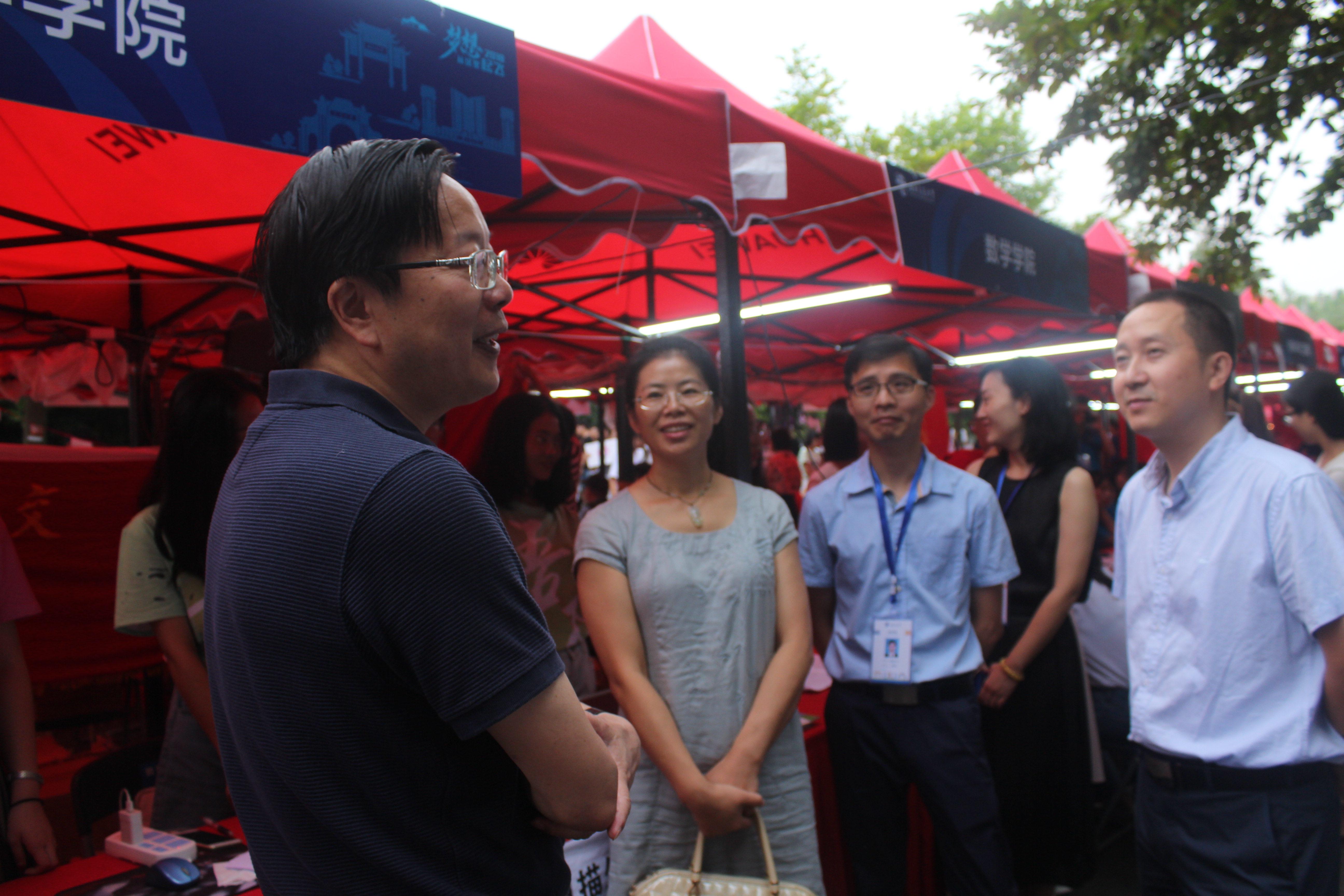 的迎新点,慰问了学院的迎新工作者们。沈常委亲切的询问了学院新生报道情况,并且和徐书记与杨院长进行了交流,指出数学作为一门重要的基础学科,越来越多的学生意识到了学习好数学的重要性,自主填报数学专业,数学的研究生招生在不断发展,博士生招生也将在后续启动,学校也将给予大力的支持助力数学学科更好的发展。