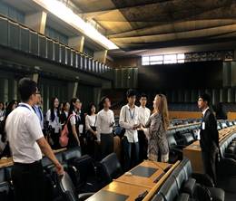 学子还随队前往位于瑞士日内瓦、罗马等地的国际组织进行参访和学习。同学们近距离感受到了国际组织的多元化以及国际化工作氛围,并通过多场由不同部门国际职员带来的专题报告并收获了关于国际组织人才选拔标准、工作重点、如何推动联合国可持续发展目标及与青年发展相关的系列知识。