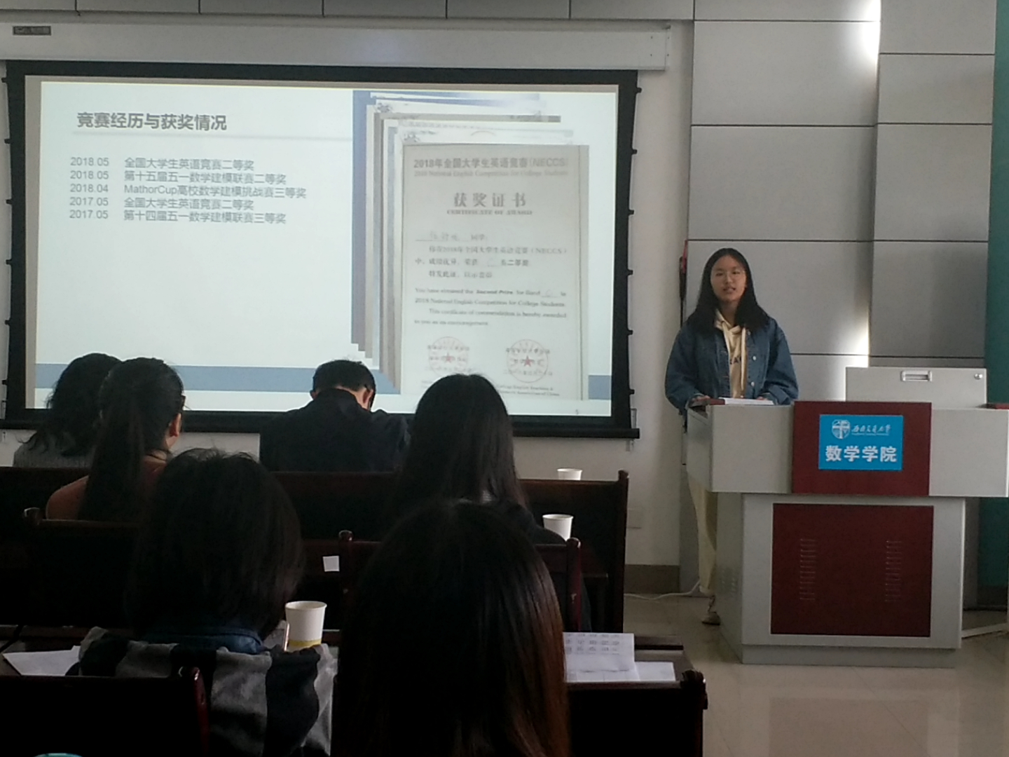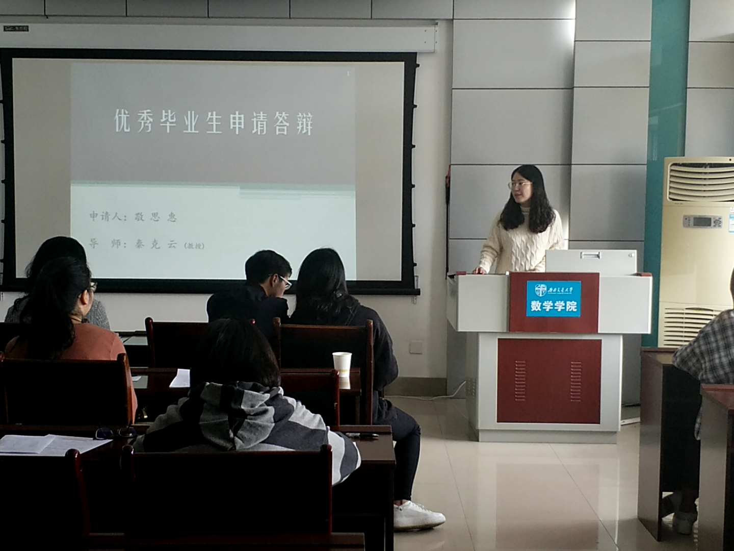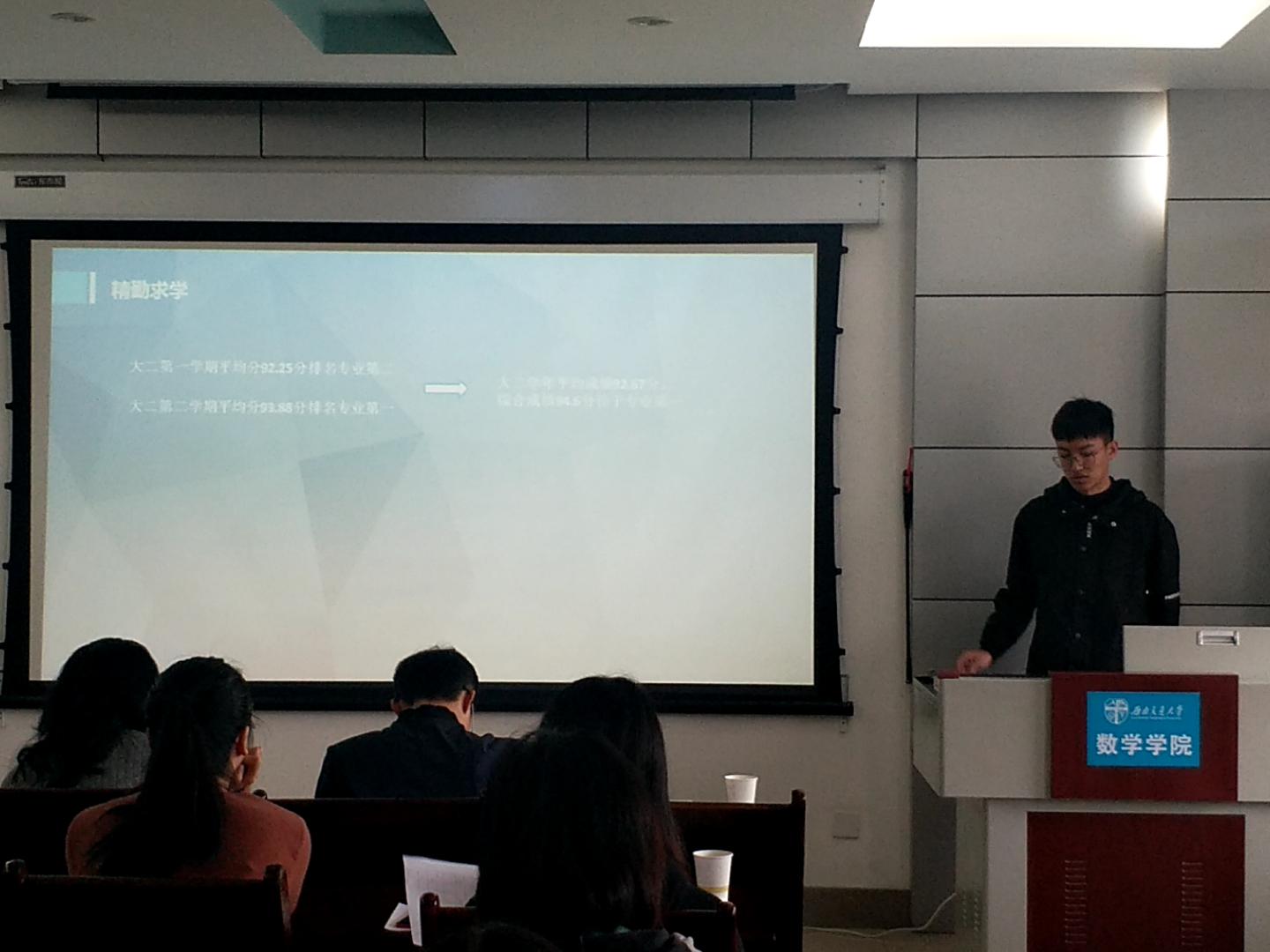 首先进行的答辩是竢实扬华奖章答辩,答辩人刘冰列举了近年来所收获的荣誉,把他的成就归功成其大学生涯中的所遇所为,展示出了“不凡的经历塑造不凡的人”,突出了自身的强劲实力和对科学的不懈追求。紧接着是省级优秀毕业生的评选答辩,答辩人张雁灵从学习成绩、学生工作、科研竞赛以及社会实践四部分划分了她的大学生活,展示出了全面发展的生活态度以及优秀的综合实力。继而是三好标兵的评选答辩,由郭奥洋、杨思哲、郑伟杰、蔡逸、伍舒妮、孙济任、彭炜、张璇八位答辩人向大家展示自身的能力,从学习情况、科研竞赛、学生工作以及社会工作等方面更详尽地突出他们自身的能力,使得每一位同学自身具有的优秀特质都得以展现。