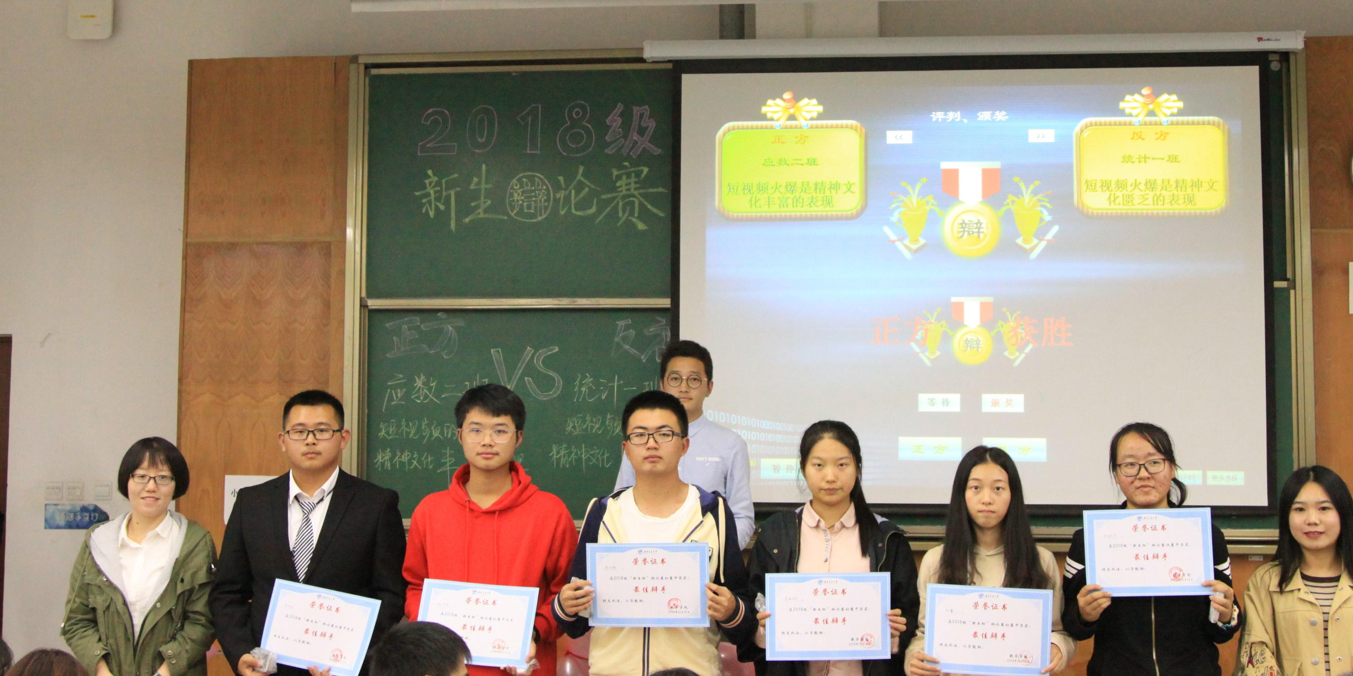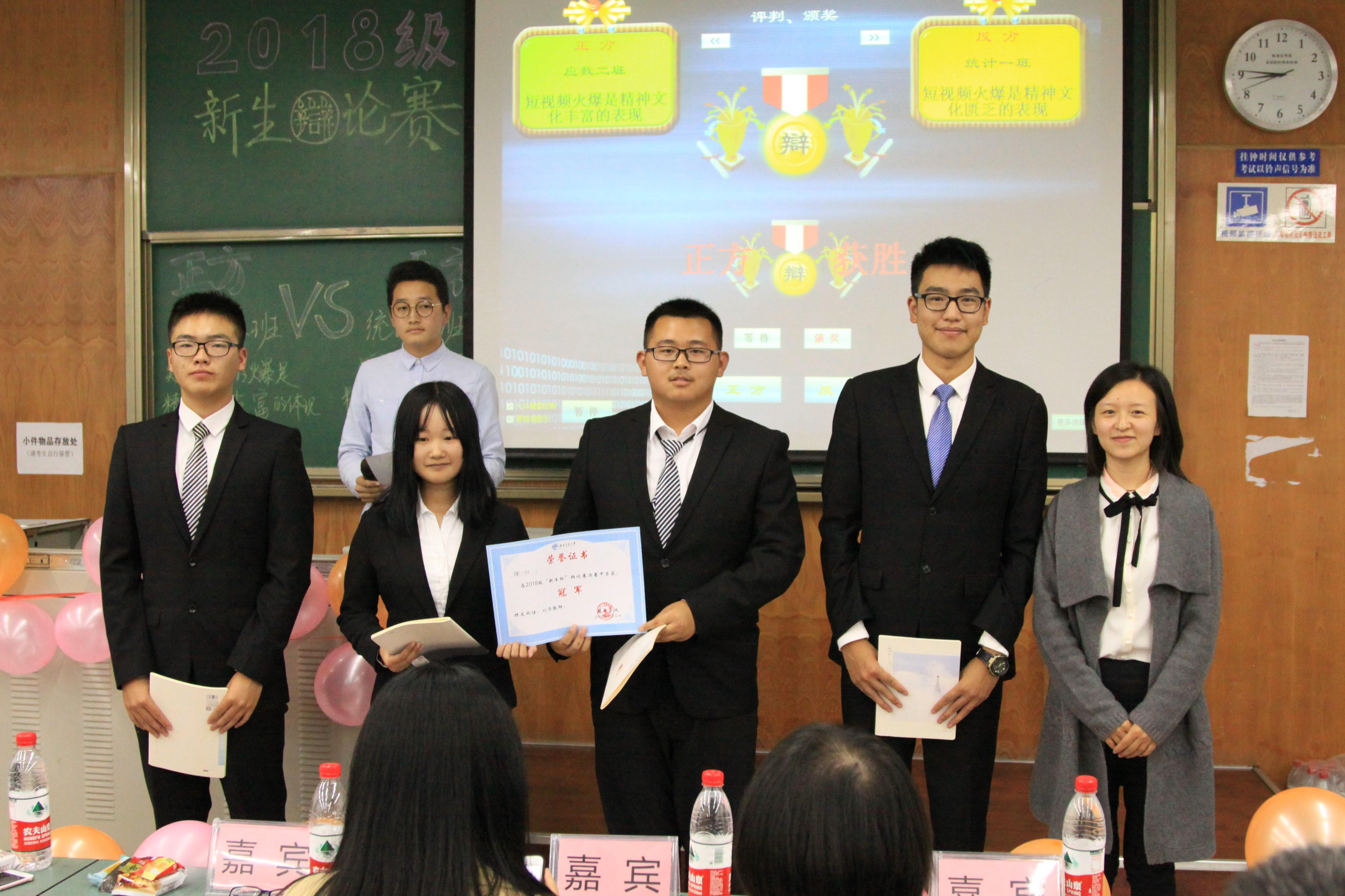 最终主持人揭晓本场比赛的结果,数学二班获得了最终胜利,数学二班二辩获得了最佳辩手的荣誉称号。颁奖仪式结束后,网飞猫