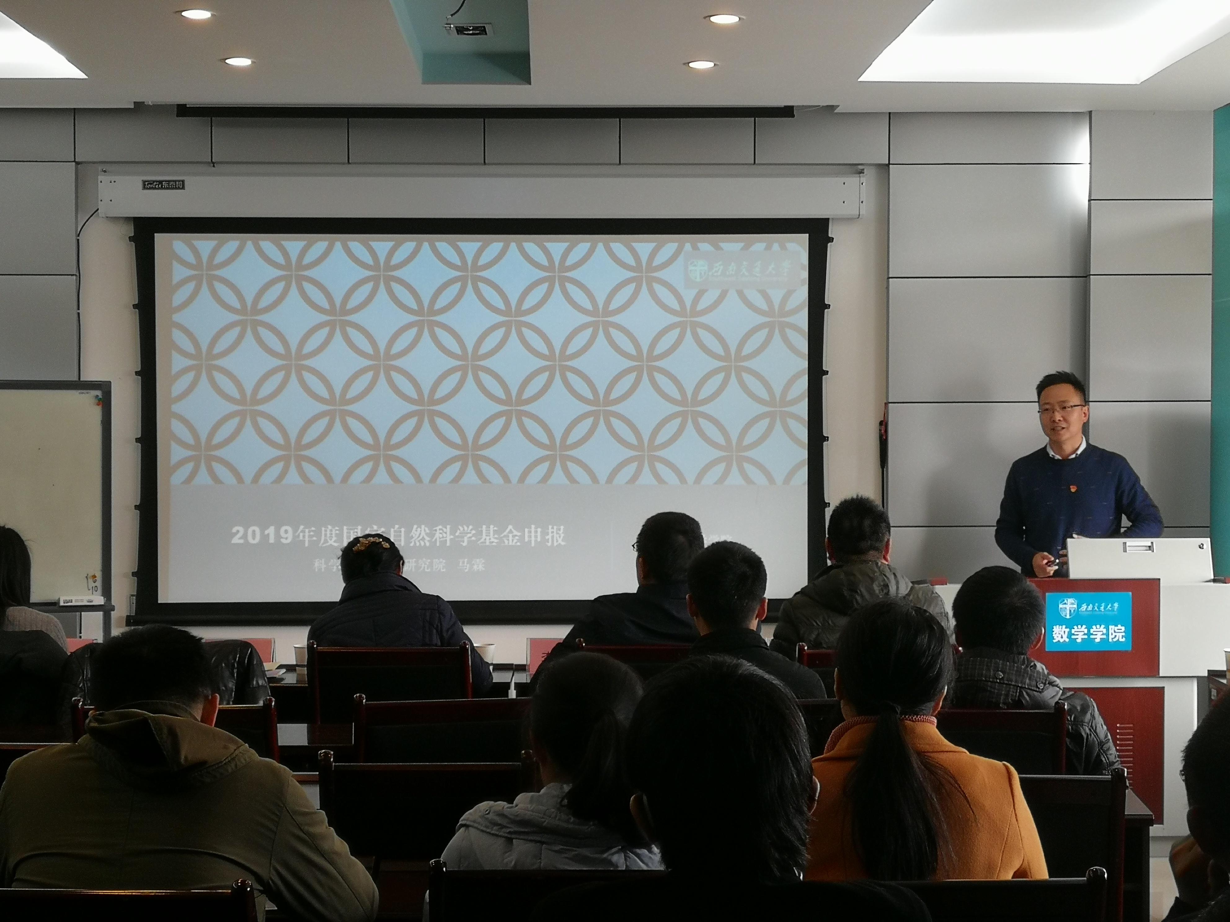 的老师们详细介绍了有关国家自然科学基金项目申报的流程和细节。马霖老师从“回顾2018”和“展望2019”两个方向切入,首先介绍了交大在2018年的基金申报情况,并通过图表等方式直观地向大家展示了最近几年学校总体的获资助情况。而提到展望2019,马霖老师先详细描述了基金委的一些新出台政策,在此之后又结合网飞猫