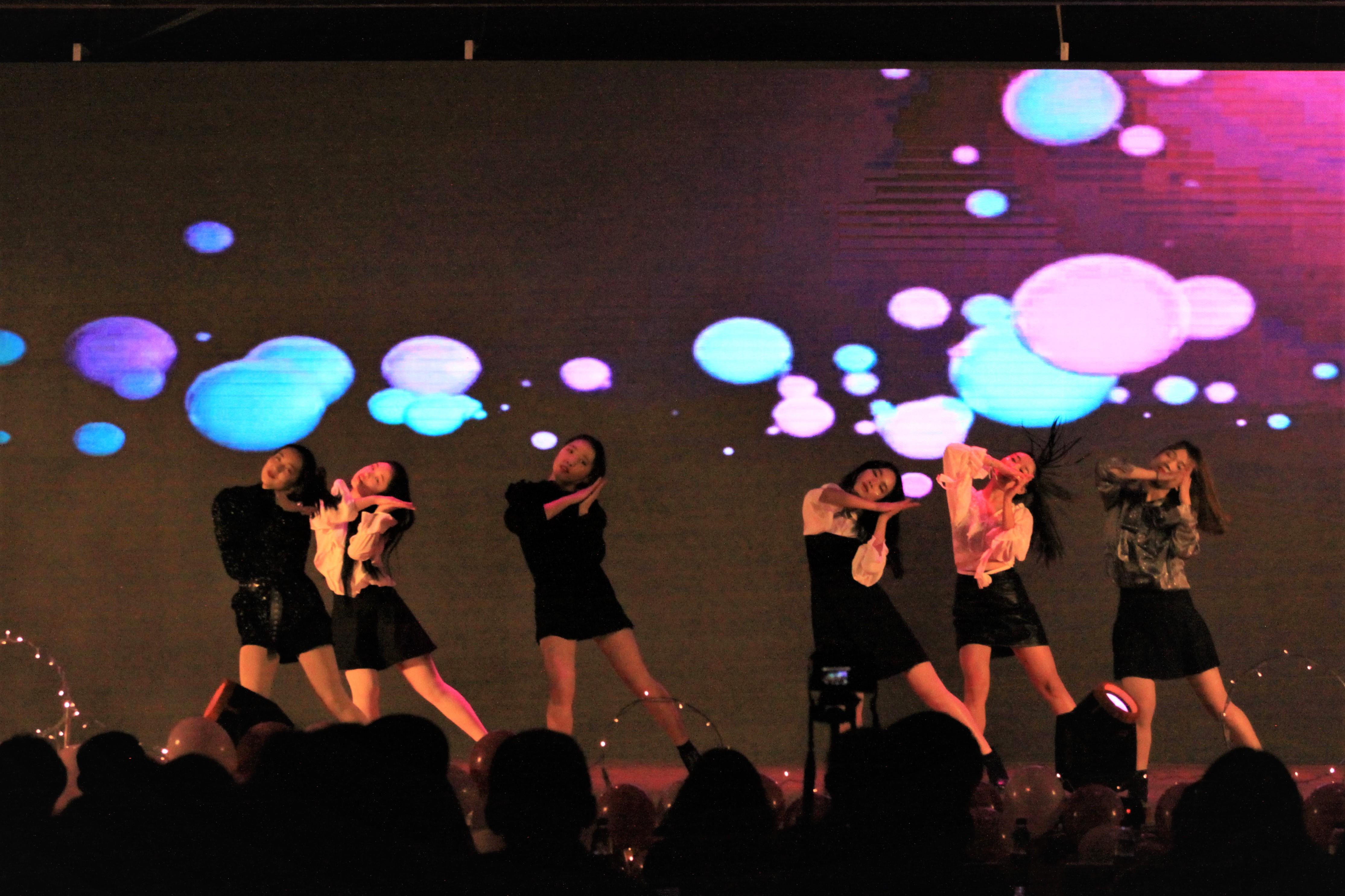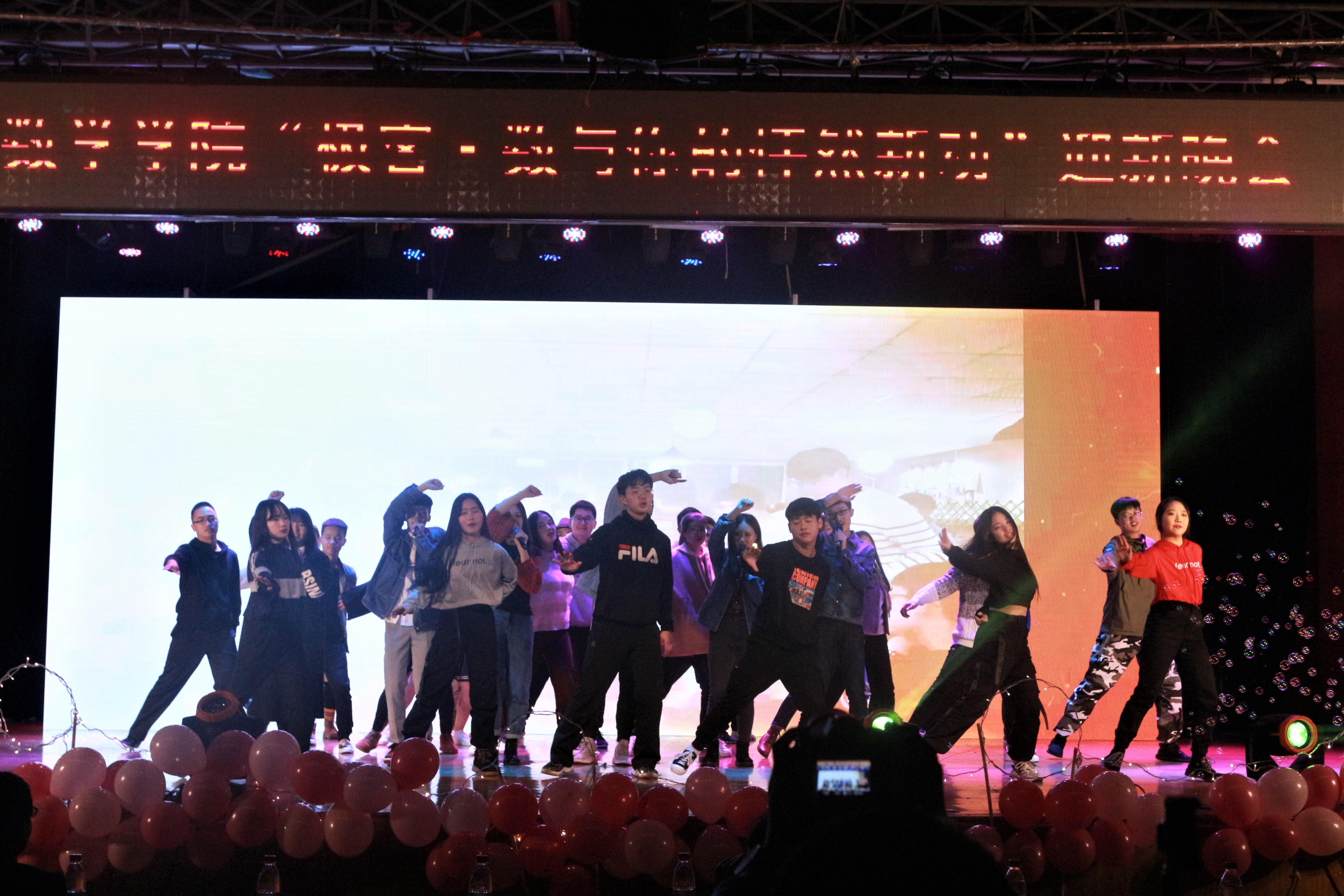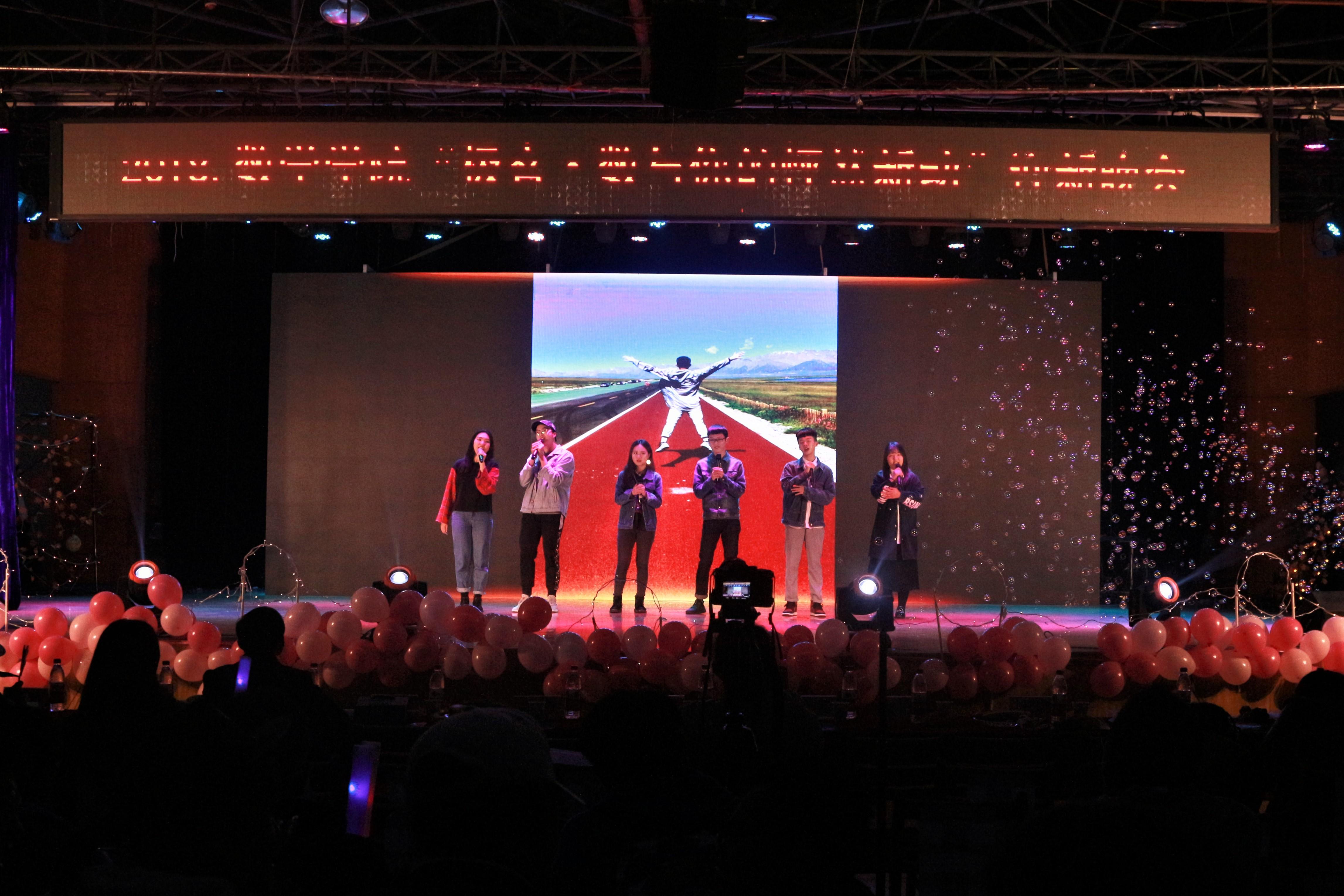 党委副书记杨育鸿老师、团委书记邓思然老师、辅导员谢童心老师、钟义婷老师和李思佳老师共同演绎。各位老师们的出场让掌声不断响起,同学们都为老师们用力挥舞着荧光棒,和老师们情不自禁地共同演唱。青协大家庭载歌载舞,不愧当的上一个精彩的压轴节目《BLOOM》,男生女生默契满满,最后的一声声“网飞猫