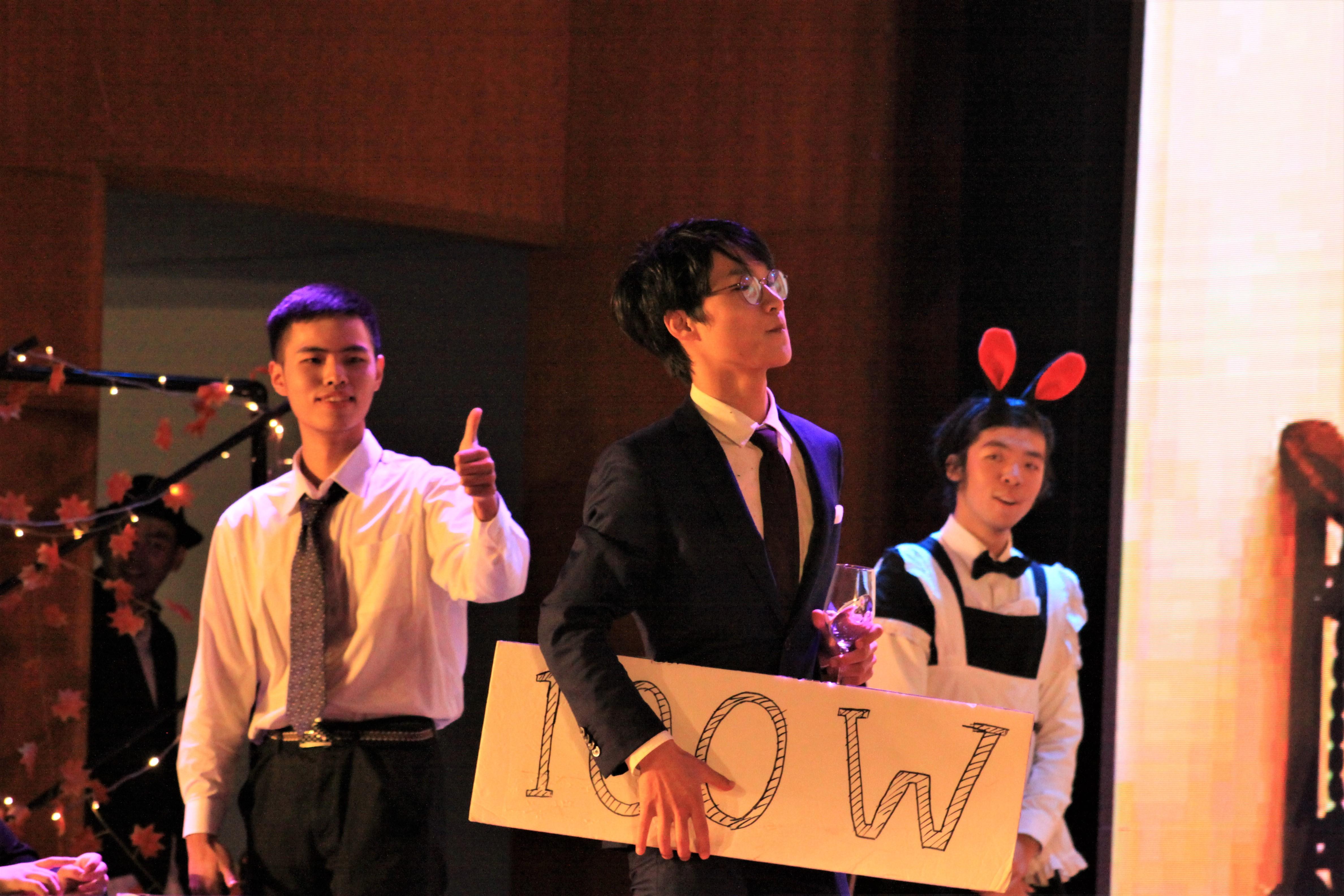 第五个节目是应数一班的音乐剧表演《木偶》,丰富精彩的表演形式,内涵深刻,衔接有序的情节都给观众留下了深刻的印象。第六个节目是爵士舞《Likely Du Du Du Du》,六位高挑漂亮的小姐姐用精湛迷人的舞姿,默契十足的配合征服了在场的所有观众,赢得了无数呐喊和掌声。接下来的节目是由一对俊男靓女深情演绎歌曲《燕归巢》,他们美妙的歌喉,精彩的互动得到观众的喝彩。然后进行了本次迎新晚会第二次抽奖,奖品为口红和香水。