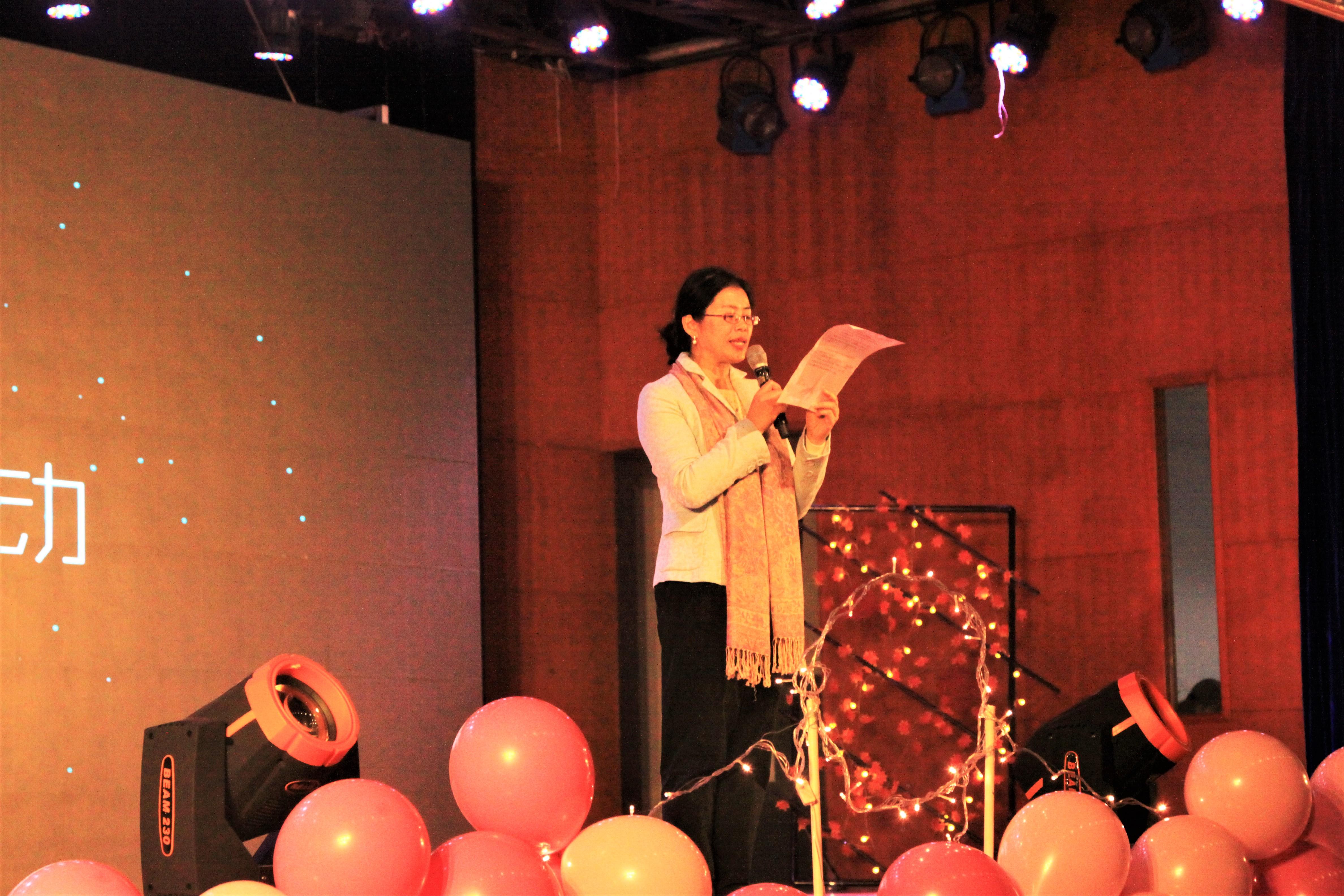 党委徐革书记为迎新晚会致辞,徐书记首先表示了对支持本场晚会的老师同学们的感谢,她阐释了她“数与你的怦然新动”这一主题的意义,“数”既是数学与2018级新生的不期而遇,也是一个动词,细数网飞猫