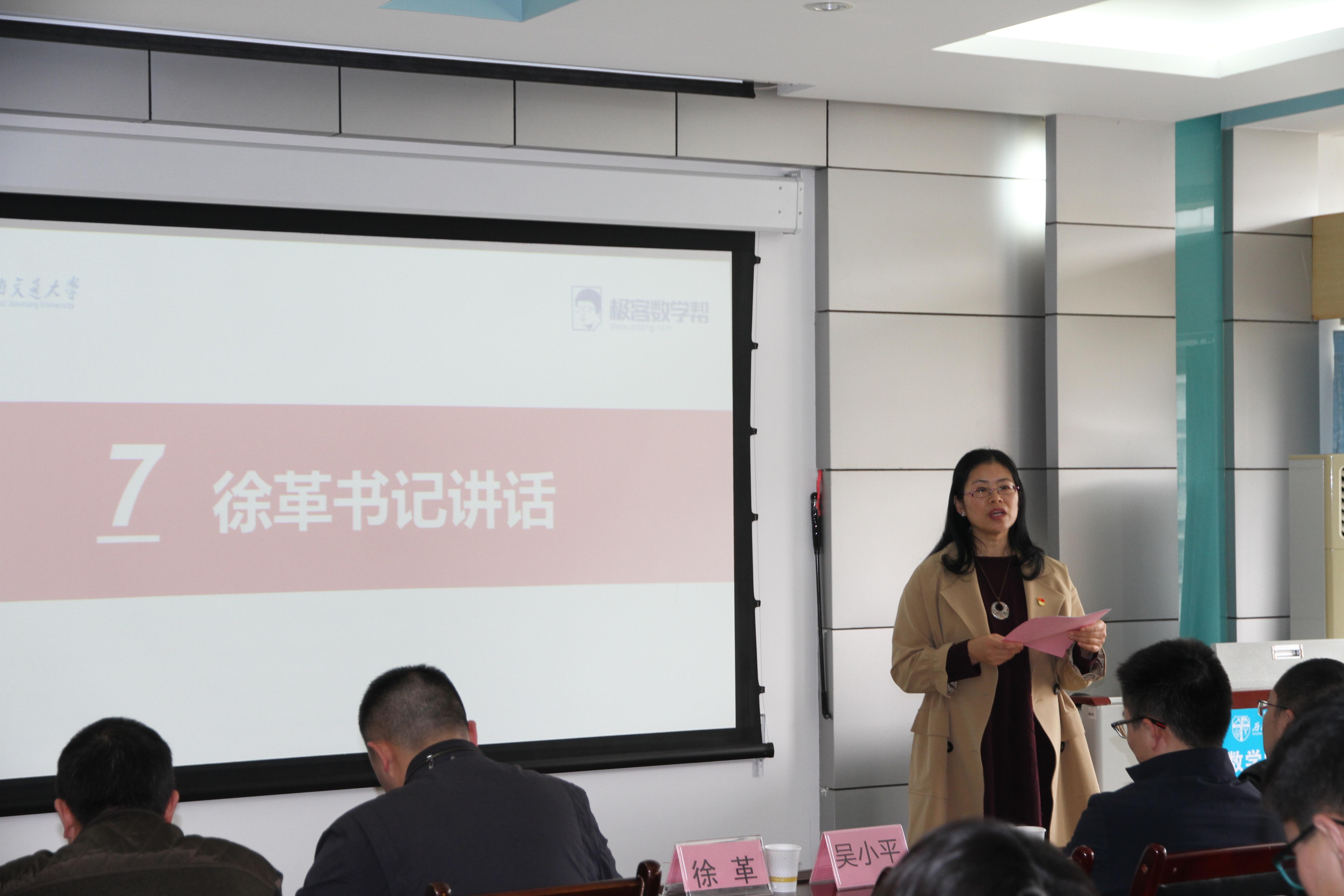 党委徐革书记进行了总结讲话。首先徐书记向学校和极客数学帮对学院的发展支持表示了感谢,随后向大家介绍了网飞猫
