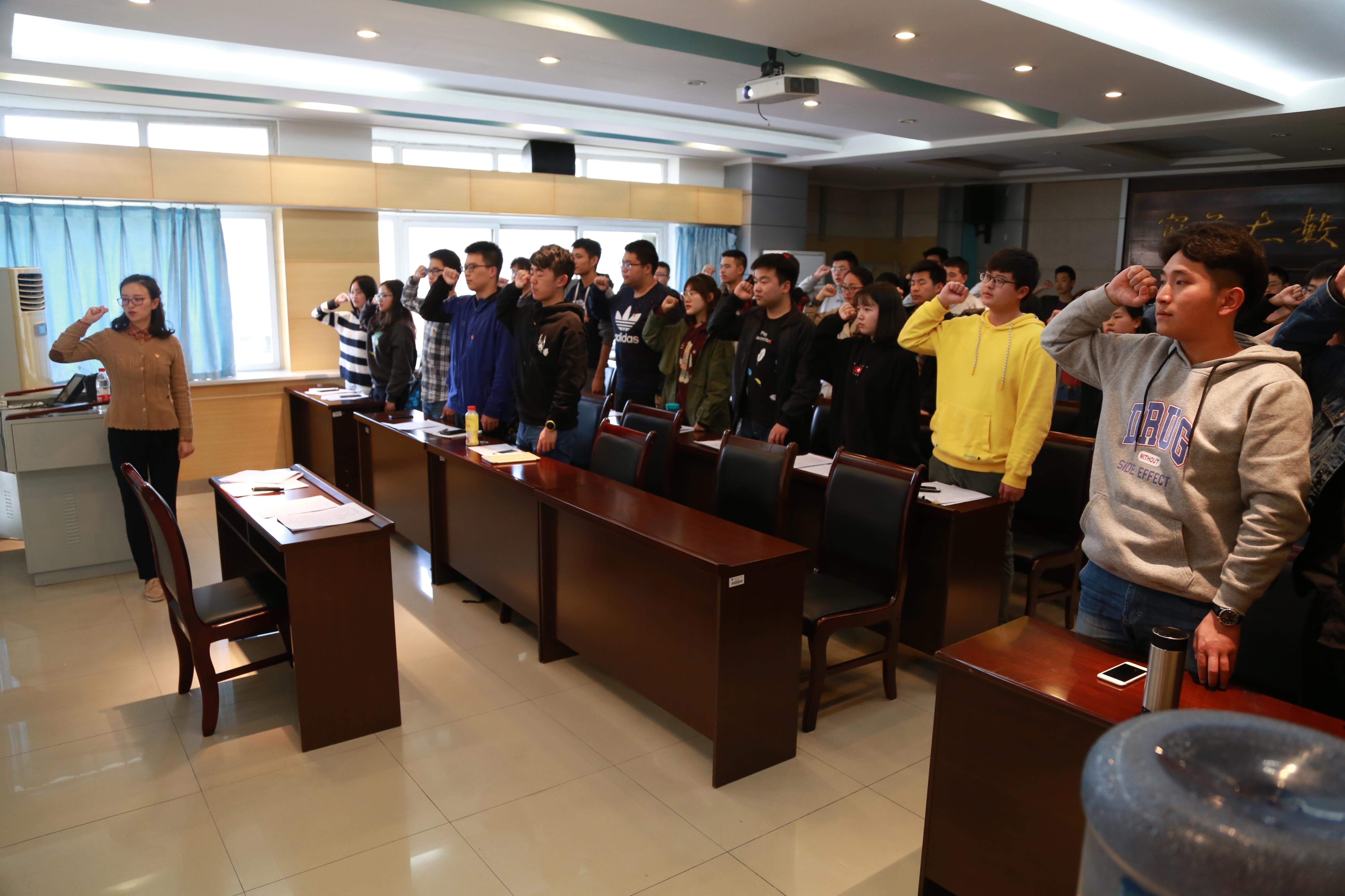 随后,邓老师从青年的定义入手,一一介绍共青团内的职责事务,鼓励团干部们朝着“四有青年人”的方向不断努力。邓老师给予在座团干部时间学习网上团课,并带着大家重温了入党誓词,回顾入团历程。