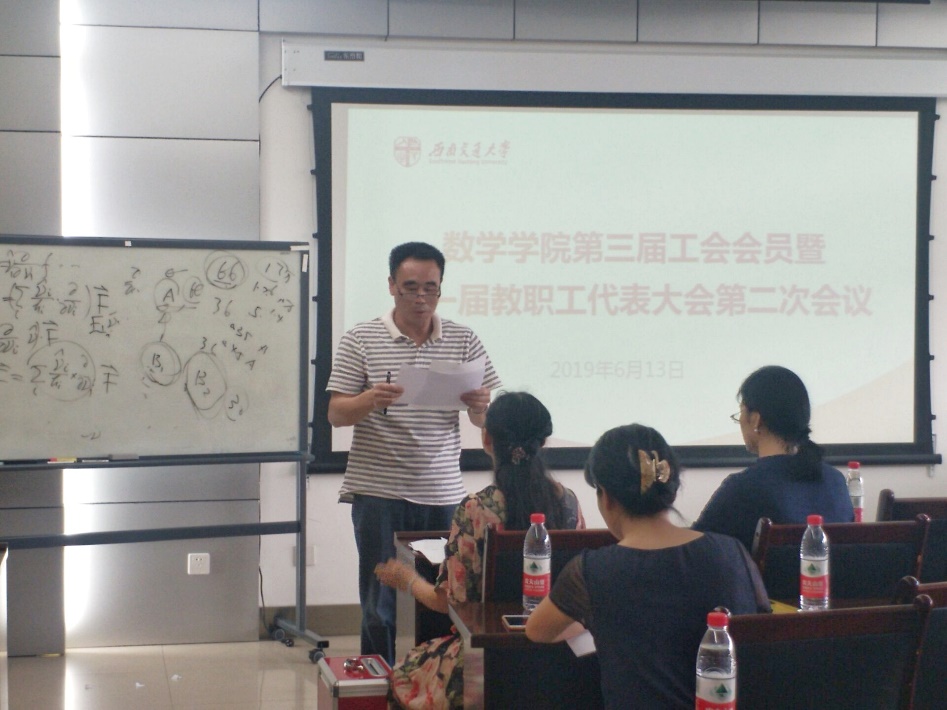有一个美好的未来,是我们共同的愿望,也是我们这一阶段交大数学人的使命和责任。讲话中,徐书记代表学院党委对工会和教代会落实全心全意依靠教职工办学,依法参与学院重要决策,凝聚人心,推进学院民主管理所做的工作表示充分肯定,并向会议代表表示感谢。
