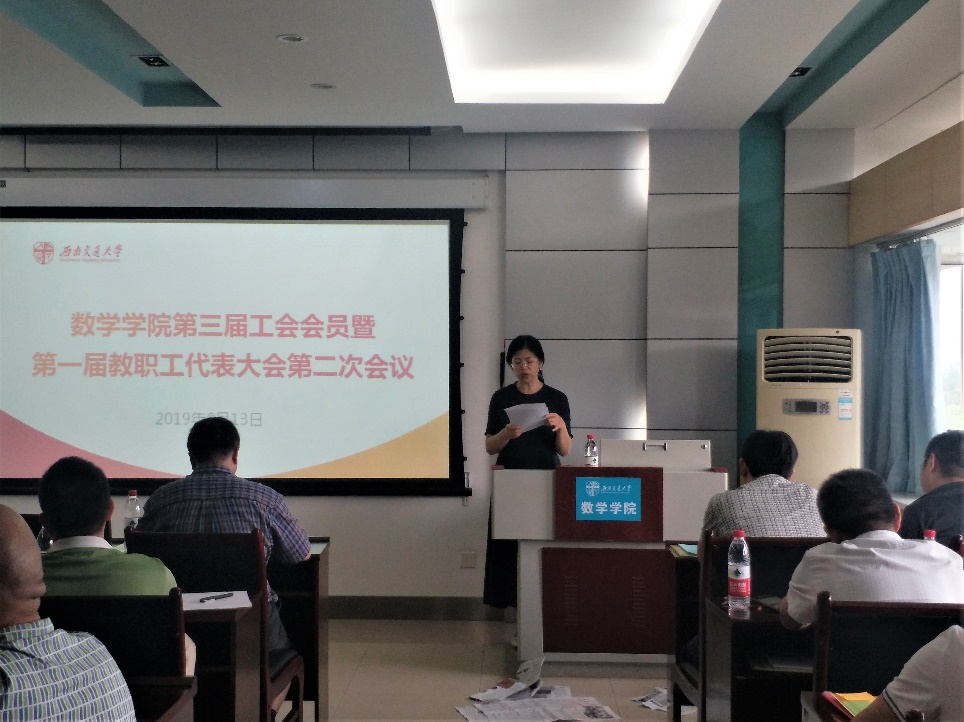 全体党政院领导、学院工会会员和教职工代表共计36人参加。会议由工会主席田俐萍主持。
