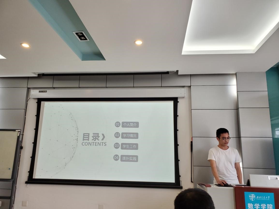 随后,评比正式拉开大幕。首先进行的是国家奖学金答辩,分别由郑伟洁、汪立言、蔡文凯、常怀文、李雨桐、周小兰六位答辩候选人上台演讲。他们从学习情况、科研竞赛、学生工作、社会工作等方面进行了展示,每位同学都具有优秀的综合实力。
