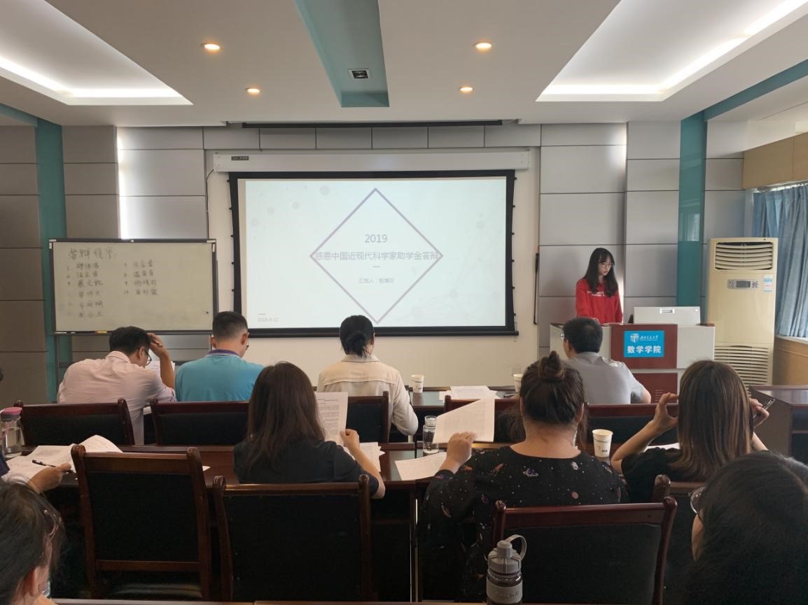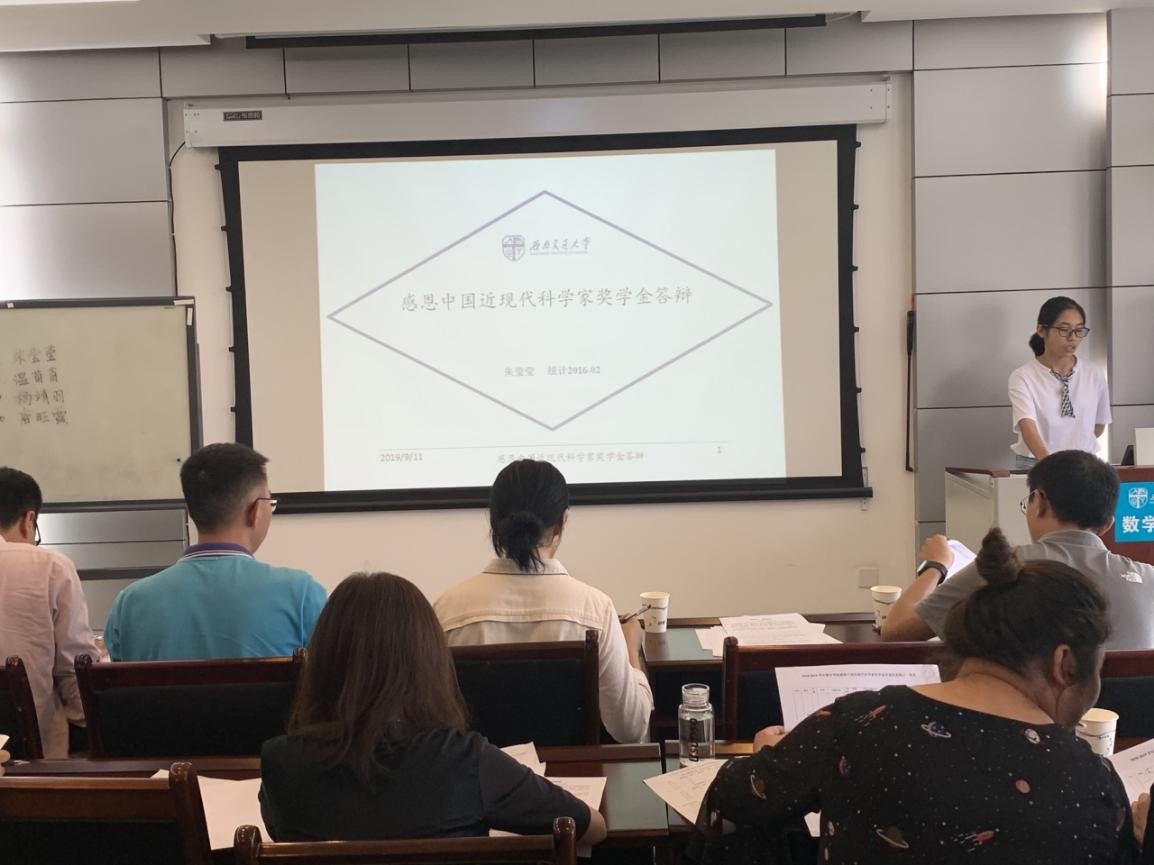 紧接着进行答辩的是感恩中国近现代科学家奖助学金申请者朱莹莹、温苗苗、杨靖羽和唐旺霞,她们除了展示出自己优秀的成绩以外,也阐述了自己对科学家精神的看法,表明了向交大伟大科学家校友看齐的决心,并为之努力奋斗,自强不息。