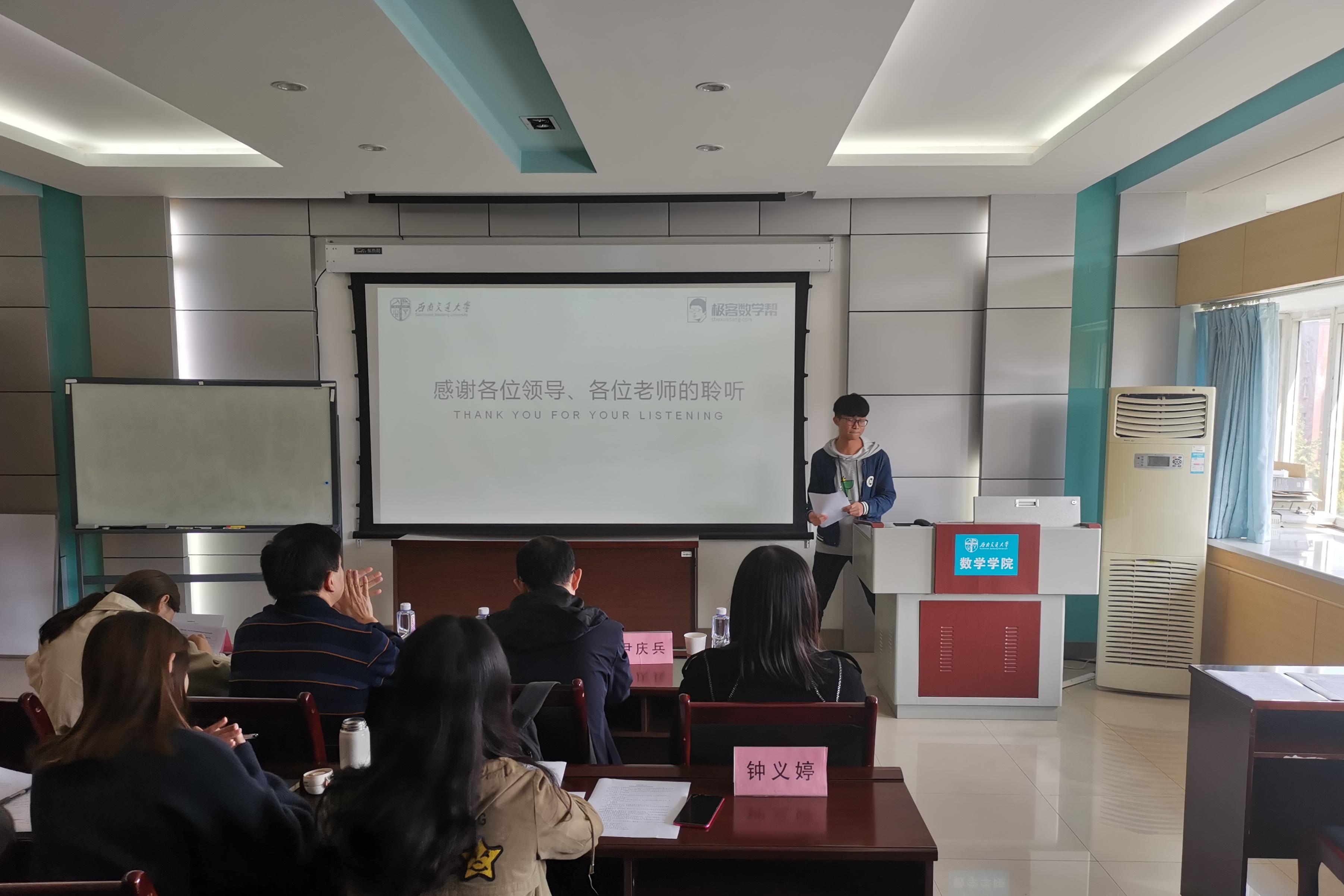 随后进行的是极客数学帮助学金答辩,答辩者介绍了自己的家庭经济情况,也展示了自己在学校取得的优异成绩,同时表达了自己在日后继续奋发向上的决心。
