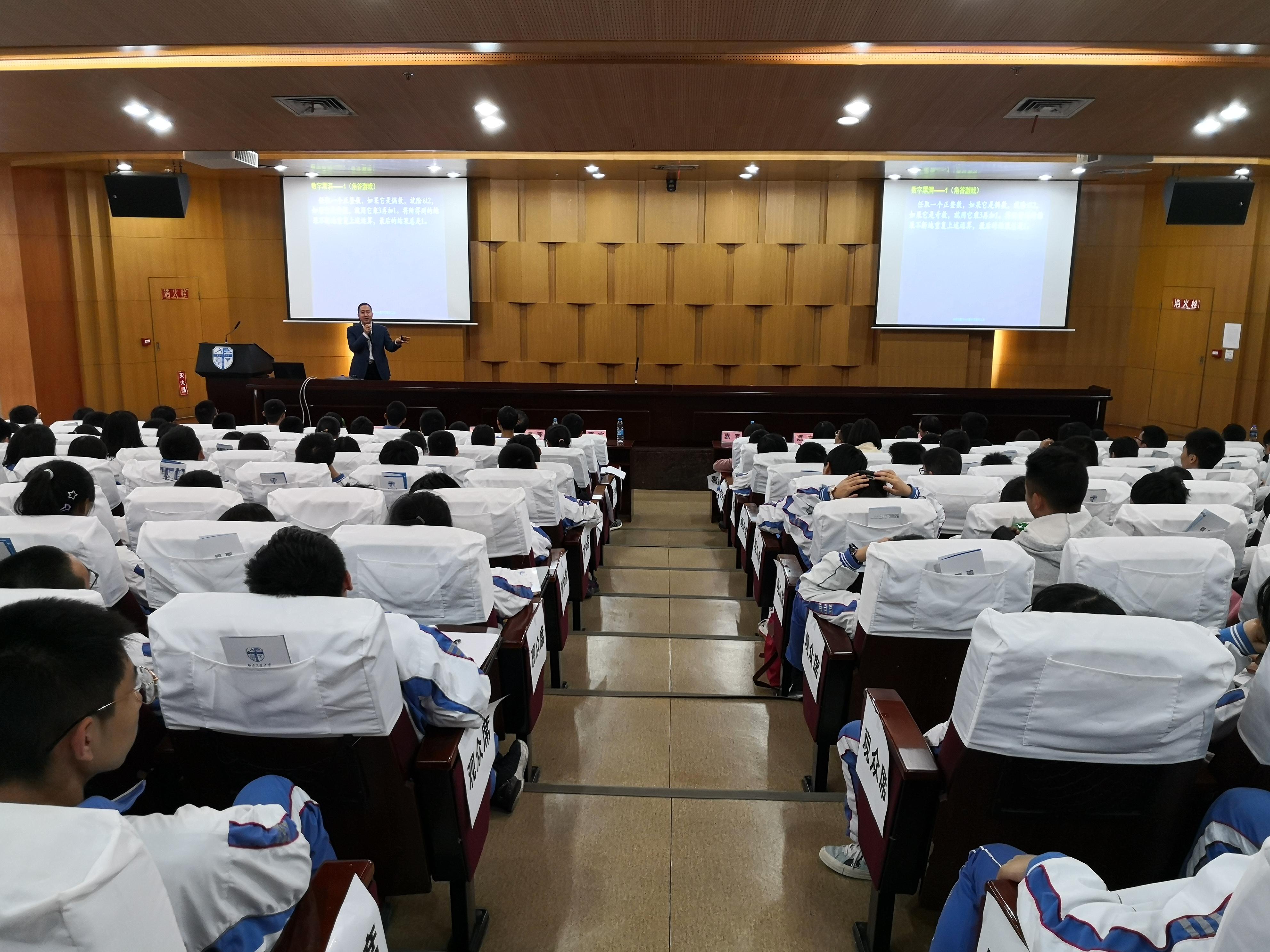 常务副院长杨晗主讲,党委副书记黄祥主持。黄祥副书记首先对来访的成都七中师生致以诚挚的欢迎,之后主讲人杨晗常务副院长以生动幽默的语言为同学们进行了题目为《从数字赏析数学之美》的讲座。杨晗常务副院长从历史上著名数学家的名言着手,讲解了数个不可思议而又奇妙有趣的数学问题,并为同学们详细介绍了数字黑洞问题、折纸问题、梵塔问题以及赤道环绳等问题,之后从圆周率π出发简单介绍了浦丰投针问题及计算机模拟氢弹爆炸试验,又围绕黄金分割比0.618讲述了自然界中生物的生长觉知,最后简要介绍了斐波那契数列及其推广——卢卡斯数列。