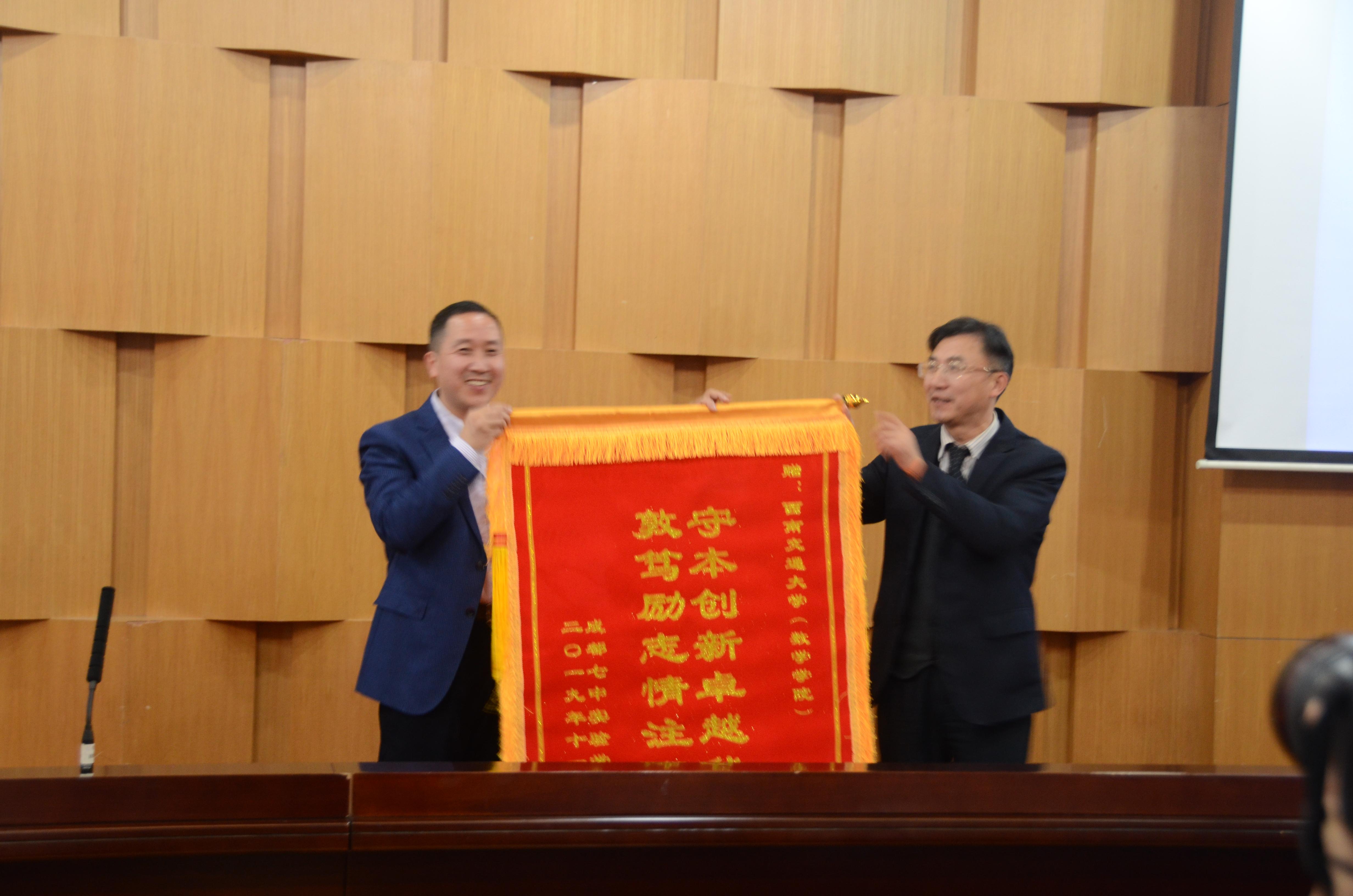讲座结束后,成都七中实验学校高中部德育处张和平主任代表成都七中赠与网飞猫