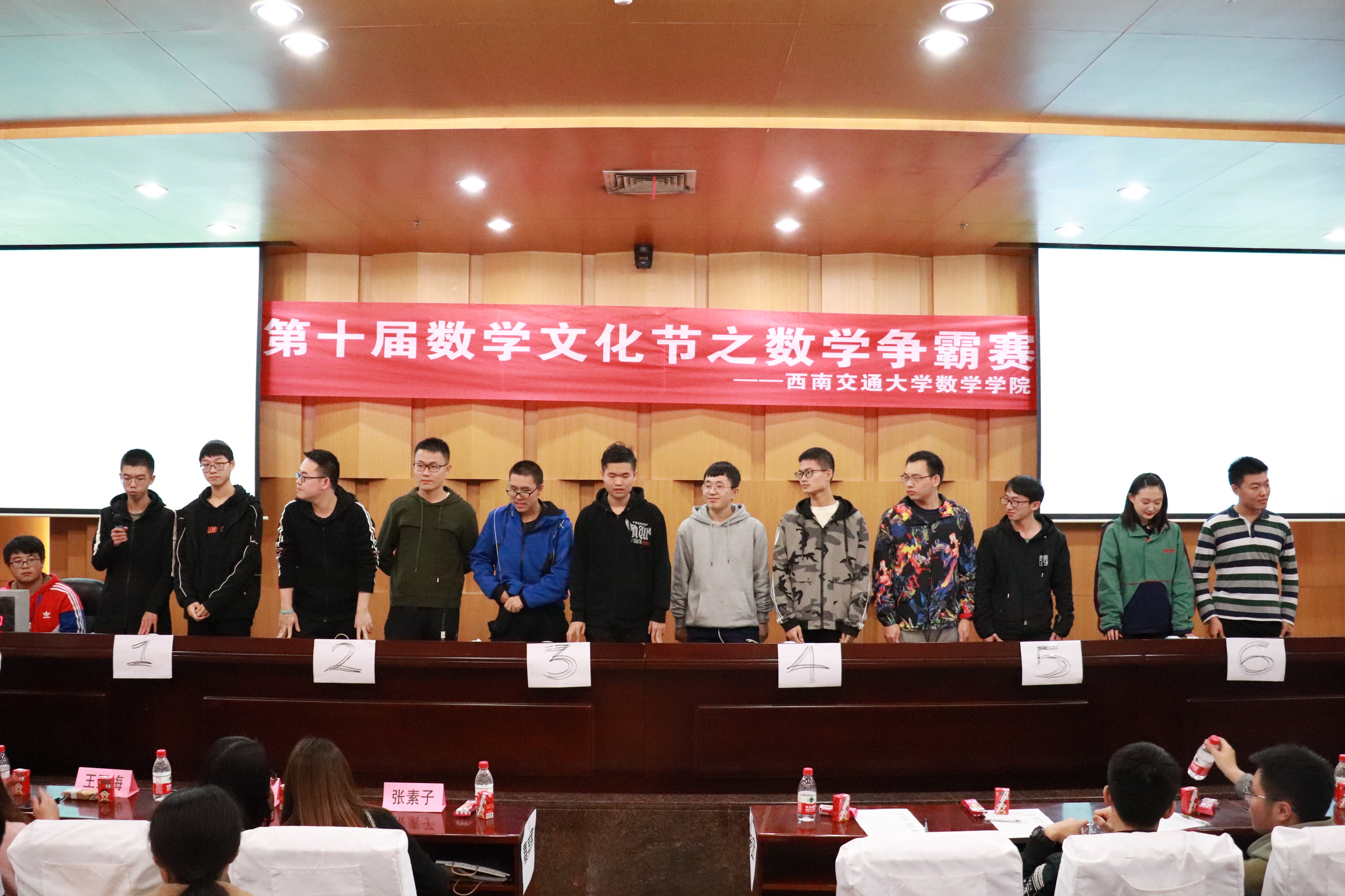 与基础数学协会联合举办的第十届“数往知来”数学文化节——数学争霸赛在图书馆二号报告厅进行。数学争霸赛是通过趣味答题赢得奖品的比赛形式,旨在通过回答数学问题的过程,让更多的交大学子感悟数学的魅力,体会数学乐趣。辅导员张素子、钟义婷、王亚梅、张洋、周睿出席此次活动,校学生会和兄弟学院学生会主席到场参观。