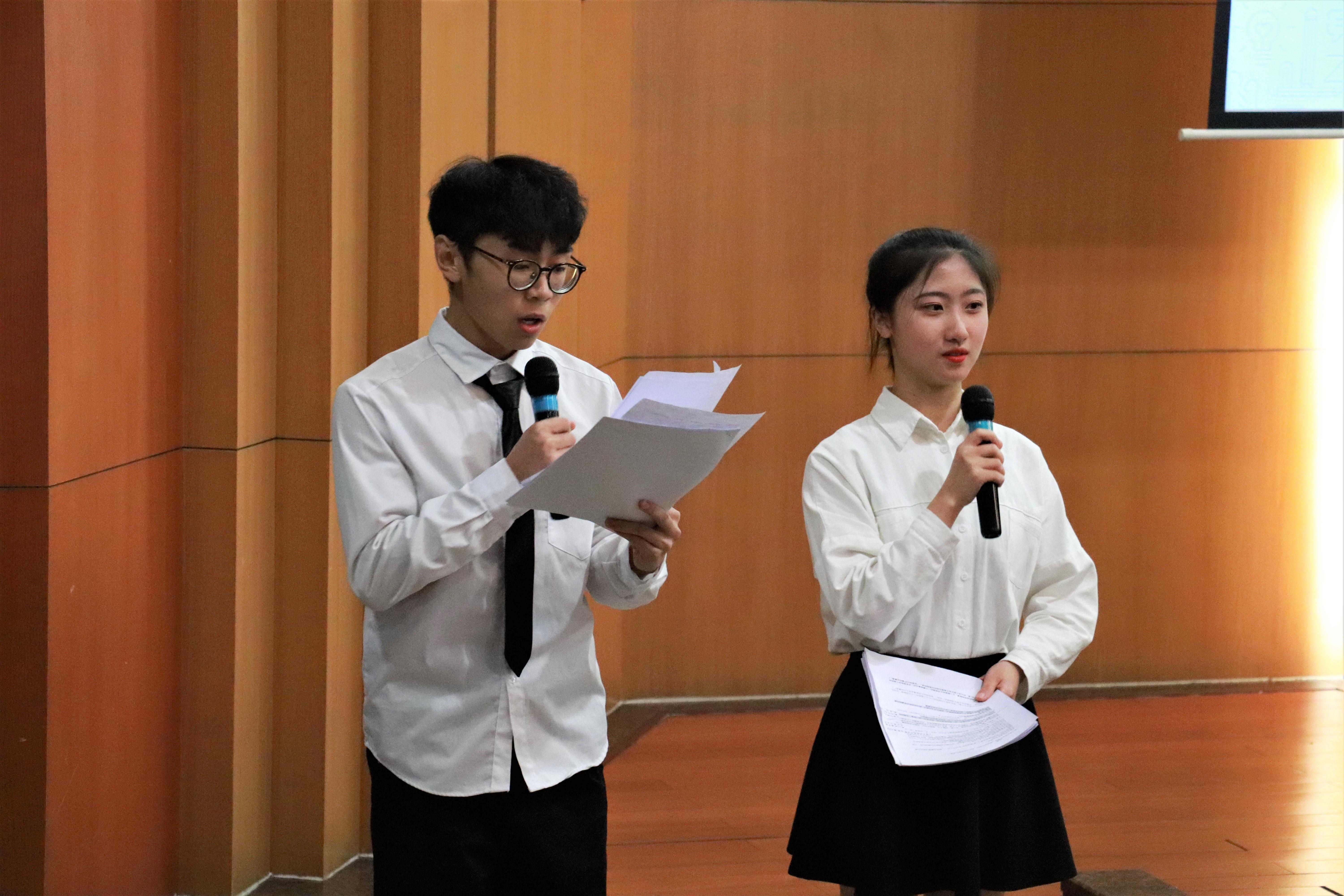 接下来是紧张的分数计算与核对环节,为了调节场上气氛,主持人杨帆还献唱了《椿》和《忽然之间》的片段,台下观众响起阵阵掌声。随后公布比赛结果,第六组的赵一冰、陕博英同学以61分荣获第一名,第三组的赵汉林、郑星宇同学获得第二名,第四组的缪家振、宋鼎获得第三名,由张素子、钟义婷、王亚梅老师分别向他们颁奖。