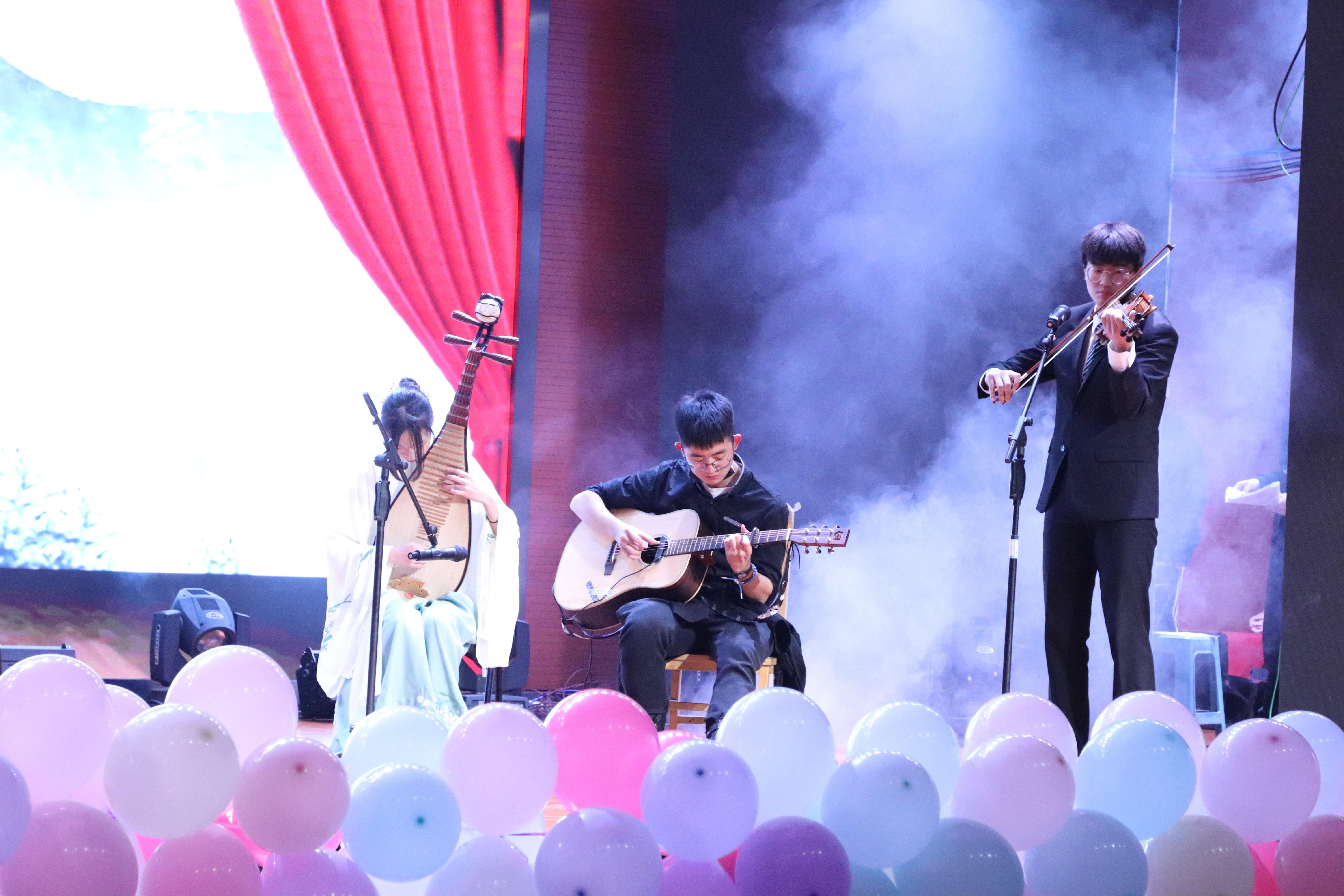 新生及毕业生带来的朗诵《山河虽远,筑梦未央》。他们带我们回望了那风雨与坎坷并存的追梦之路,让我们领略那小我之梦汇聚成的中华民族伟大复兴的中国梦。那铿锵有力的话语,带给了我们力量。