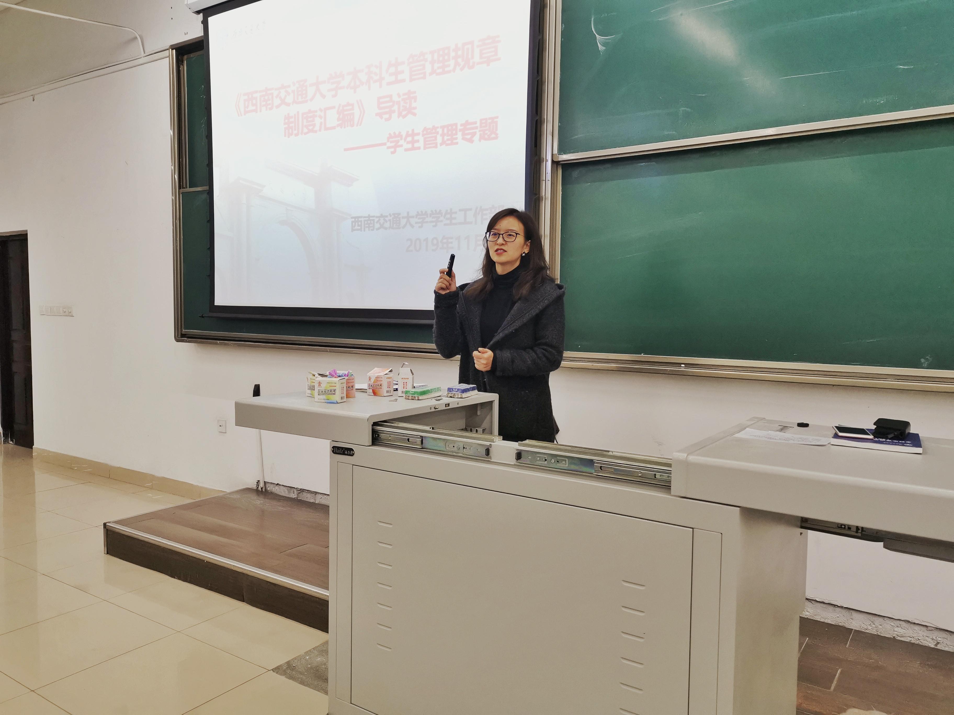 学生管理规章》,让同学们明白大学校园生活存在的约束以及不同程度的学生处分。接着邓老师介绍了奖学金以及荣誉称号的种类,让同学们有更加深入的了解。