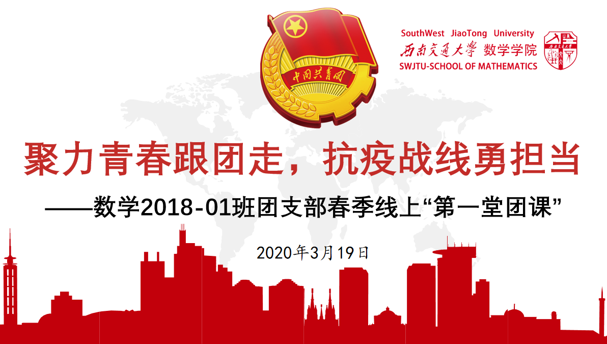 应用数学2018级1班团支部2020年春季“第一堂团课”以视频会议的形式,于3月19日14:00如期开展。团课以“聚力青春跟团走,抗疫战线勇担当”为主题,号召支部团员青年为打赢防疫阻击战而奋斗。团课由团支部书记米贤惠主持,团委组织部部长邱灵,组织部副部长吴佩欣,支部33名团员按时参加。
