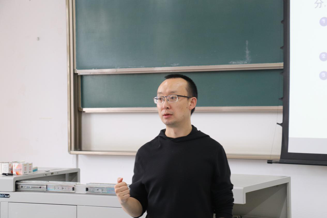 的历史沿革、专业建设、专业概况、课程设置等方面对数学与应用数学专业进行了介绍。刘品老师提到,数学是一切自然科学的基础,在人才培养上有着不可替代的作用。他指出,同学们应当做全面发展的建设者和创始人,以及基础学科的拔尖创新人才,作为优质的硕士和博士研究生生源为科研机构的基础学科建设作出巨大贡献。刘老师也对同学们未来四年所要学习的数学知识理论框架进行了概述,并为同学们未来研究方向的选择提供了指导。最后,刘老师总结到,他眼中的数学是最纯粹的科学,它十分美妙,影响了我们的一切。他也希望同学们能够在未来努力提高自己的数学素养,一同探索数学的奥秘。