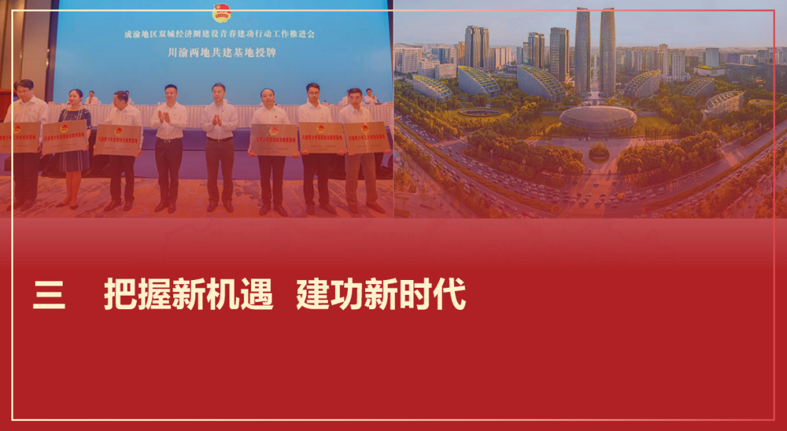接着,团支书分别从“成渝新启航构建新格局”、“打造新高地共赢新发展”、“把握新机遇建功新时代”三个方向展开本次团课活动。