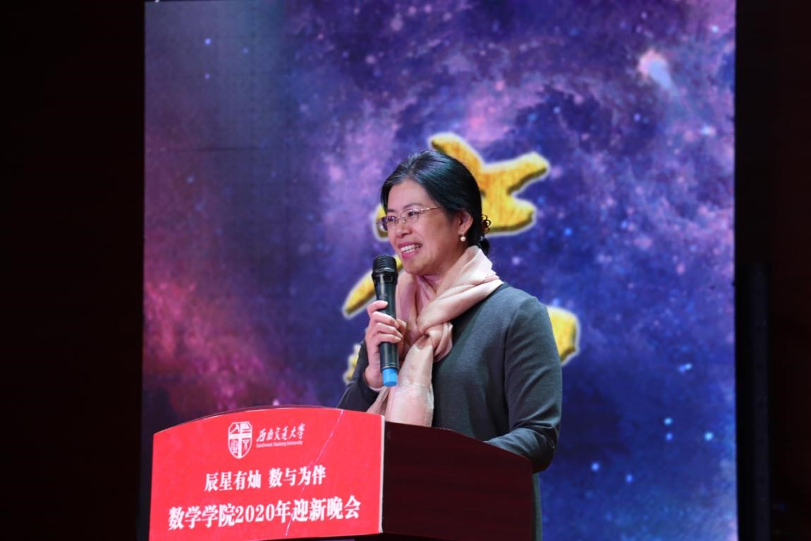 党委书记徐革教授为迎新晚会致辞。徐书记首先对2020级新生的加入表示了欢迎。接着,徐革书记总结了2020年学院取得的丰硕成果,从毕业生升学率、科研竞赛到社会实践,学院的每一位师生都同心共力,取得了突出的成绩。然后,徐革书记在阐述“辰星有灿,数与为伴”这一主题意义的同时也对支持本场晚会的师生表示了感谢。最后,徐革书记给2020级同学们送上祝福与希望,希望同学们能够笃行致远、砥砺前行。