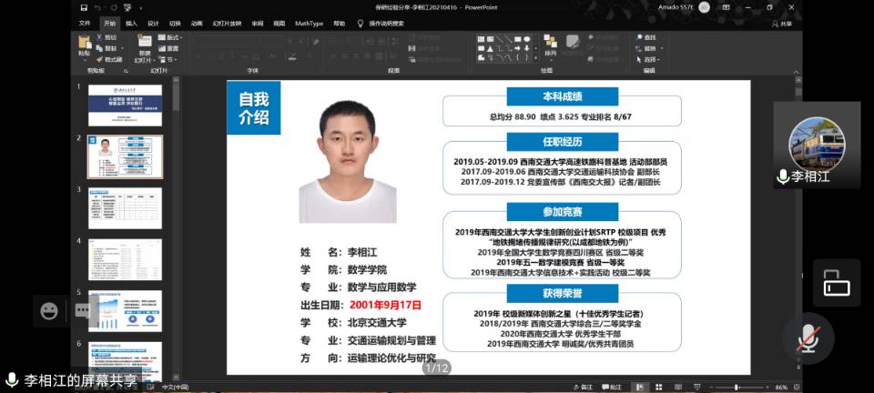 最后是由李湘江学长分享自己的保研过程,让大家对保研这个方式有更好的了解。保研分为两步,先是在自己的学校获得保研的资格以及获得目标院校的录取,李湘江学长就这两步都提出了详细的说明,帮助大家更好的知道保研的步骤与需求。除此之外,学长还讲述了一些关于跨专业保研和保外的相关知识,举出了一些自己知道的其他人的例子,向大家展示了其他的发展方向。
