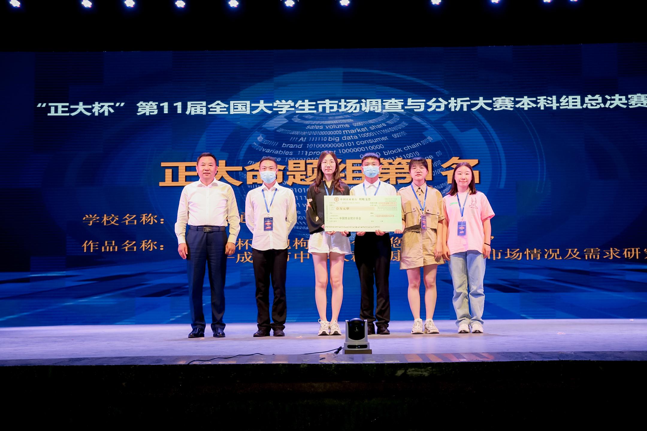 荣获“最佳院校组织奖”,“熬夜不秃头”团队作品荣获正大企业赛道全国第1名并获一万元企业奖金。“观官媒莓小队”作品获得本次总决赛全国第三名,并将代表中国大陆地区参加今年8月下旬举行的2021年海峡两岸暨港澳大学生市调大赛总决赛。