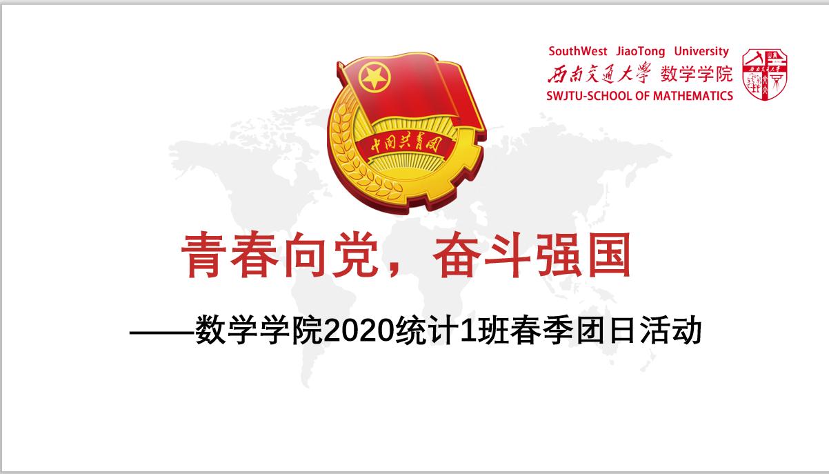 2020级统计1班团支部开展“青春向党,奋斗强国”主题团日活动。2021年5月21日早上9:00,2020级统计一班在线上举办了春季开学第一次团日活动。2020统计1班团支部的每一位共青团员都坚持初心,跟着党走。本次团课由团支书张翔主持。