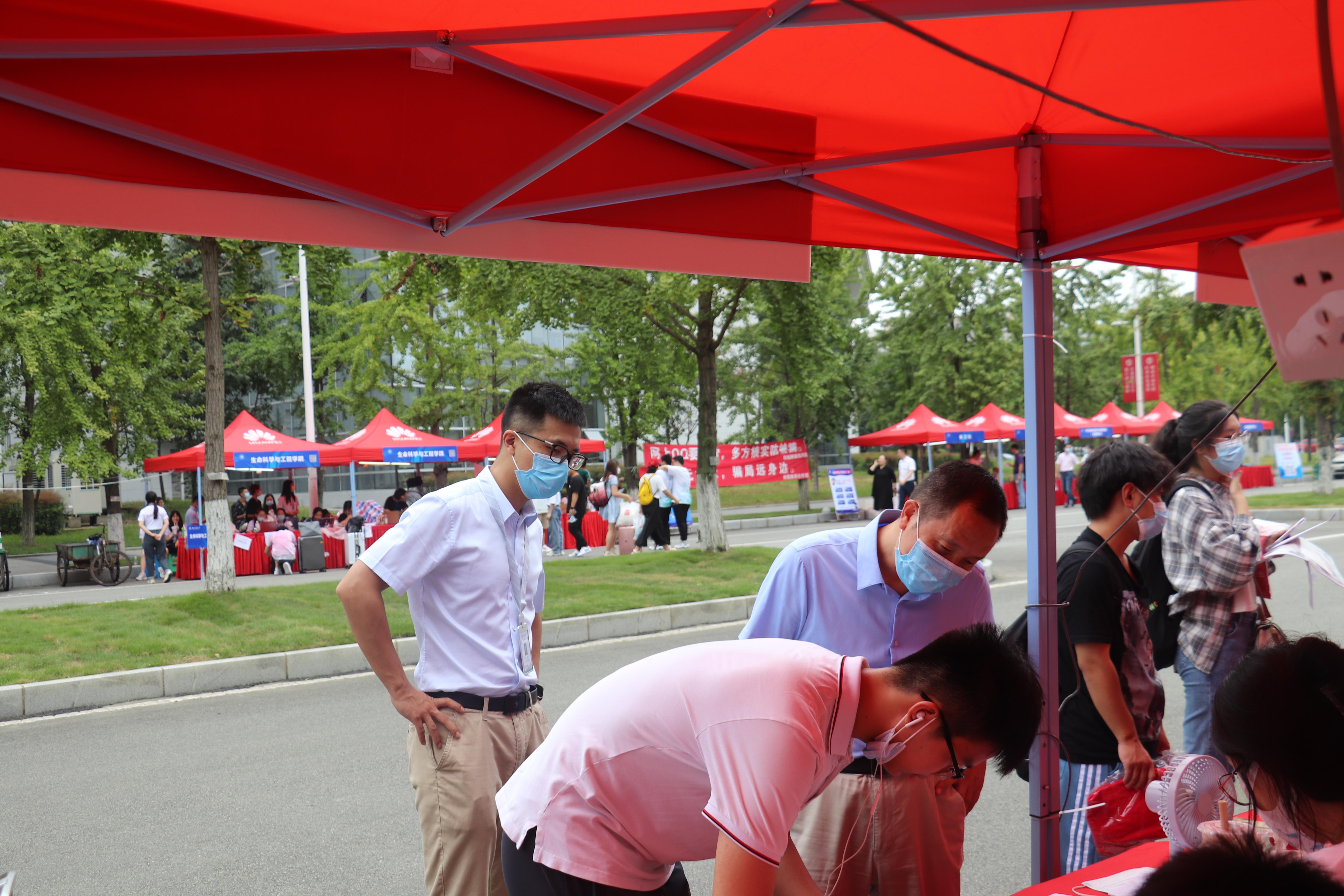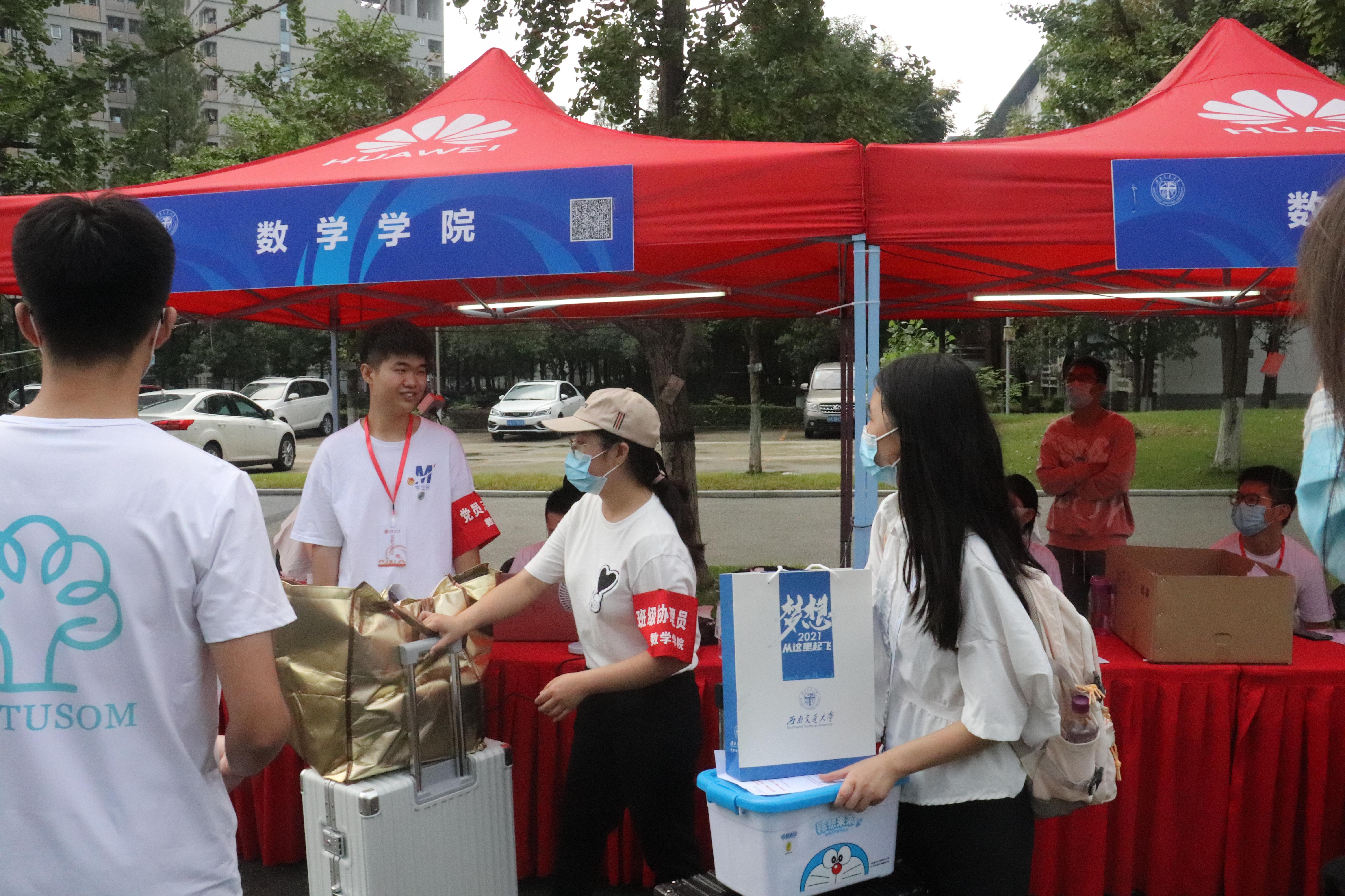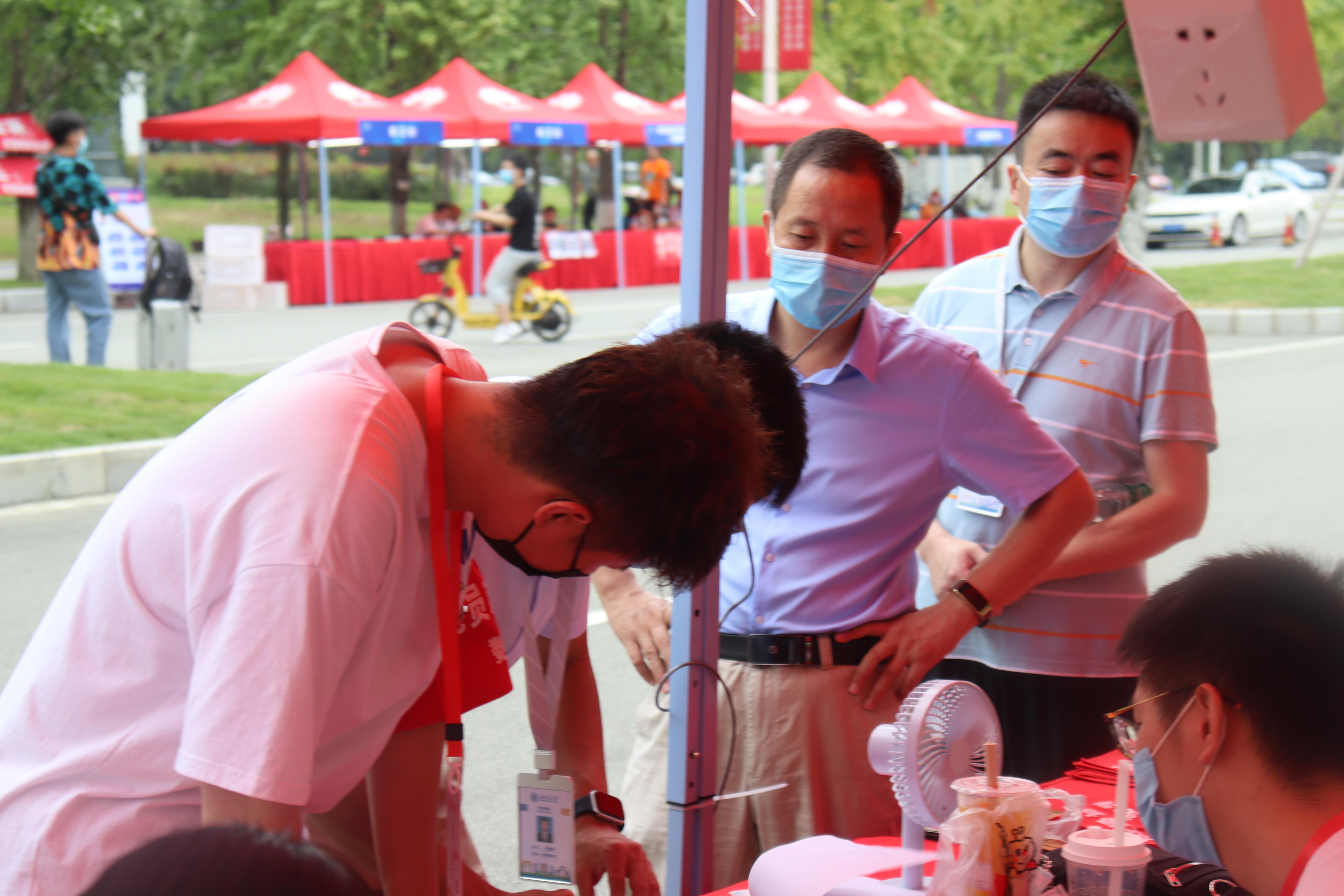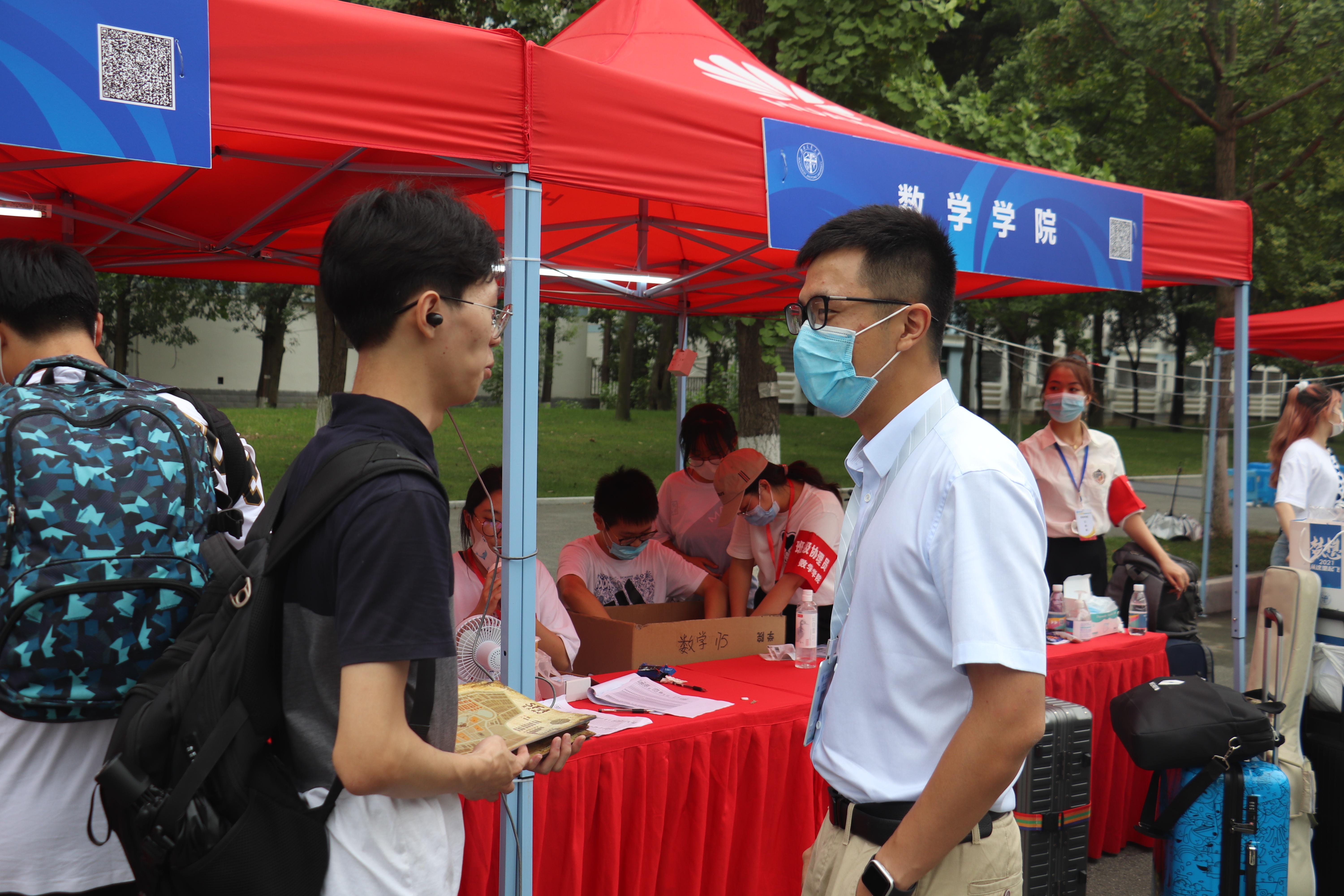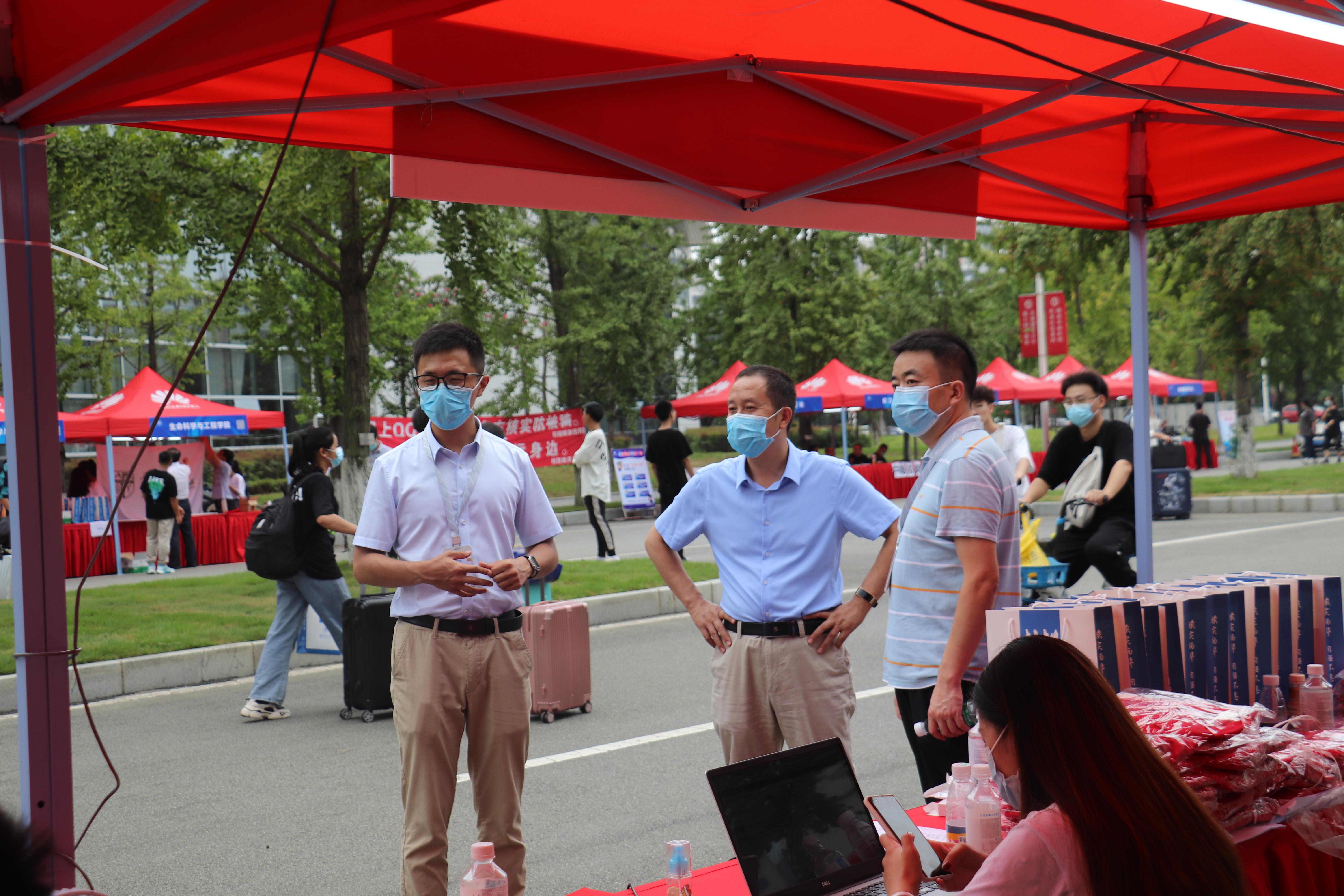 常务副院长杨晗、党委副书记黄祥莅临现场指导迎新工作,慰问数院志愿者,了解新生报道基本情况,对迎新工作给予高度的肯定。