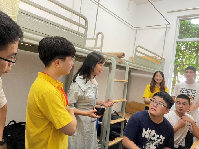 2日傍晚,学院团委书记邓思然老师、辅导员谢健祥老师以及研会主要成员一同前往新生宿舍了解新生入住状况。