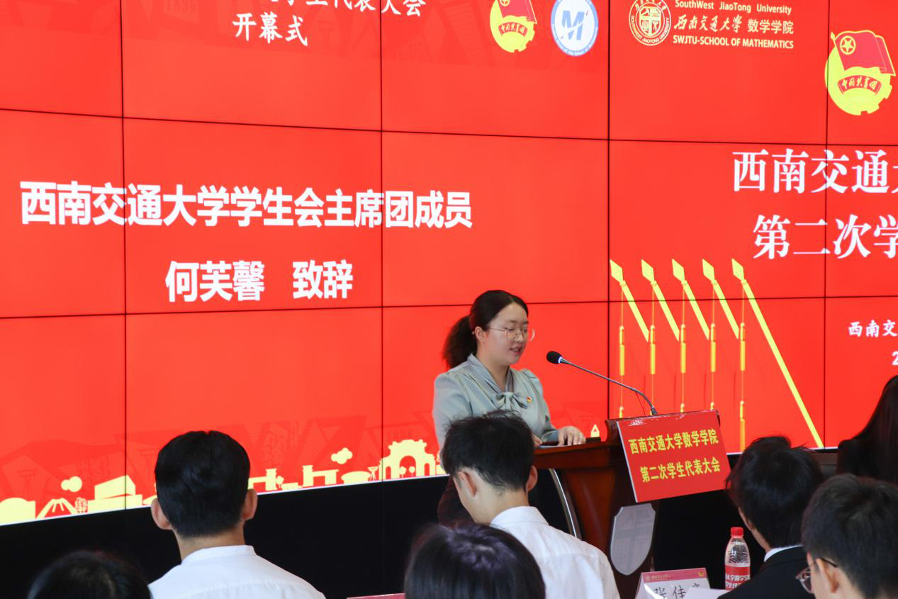团委书记邓思然老师讲话,对学生会近年来的工作给予了充分肯定,并对下一步工作提出了期望和要求。她指出,一是学生会组织要持续深化改革,加快促进新型服务型的学生会组织转型;二是学生代表要发挥好先锋模范作用,并确保学生会代表全体同学的核心职能落到实处;三是新时代青年要更加有为,在中华民族伟大复兴的进程中不负党和人民的期望。