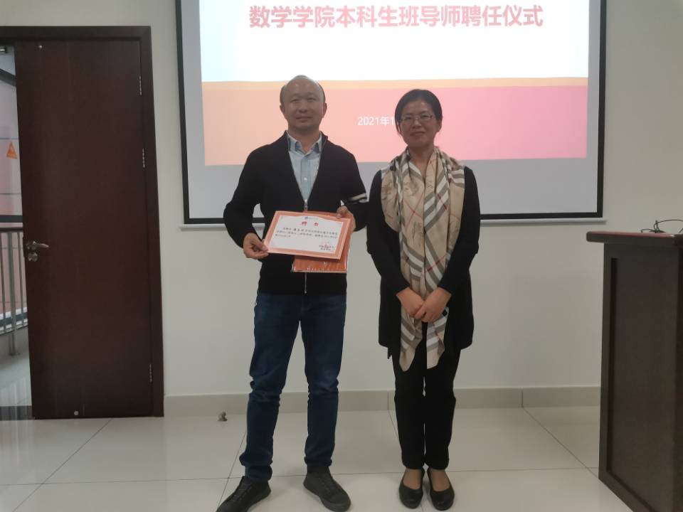 会议第一项,由徐革书记和黄祥副书记为潘志刚、杨萌、李晓斌、韩帮胜、赵君一郎和李从辉老师颁发21级新任班导师聘用证书。