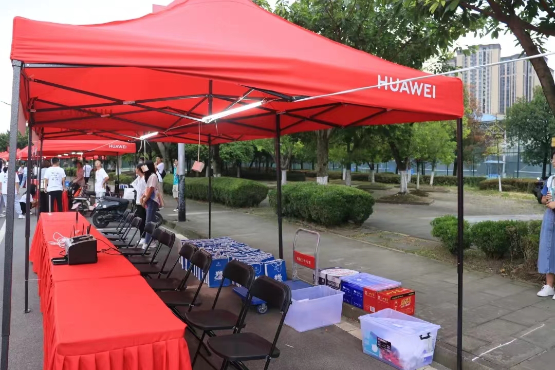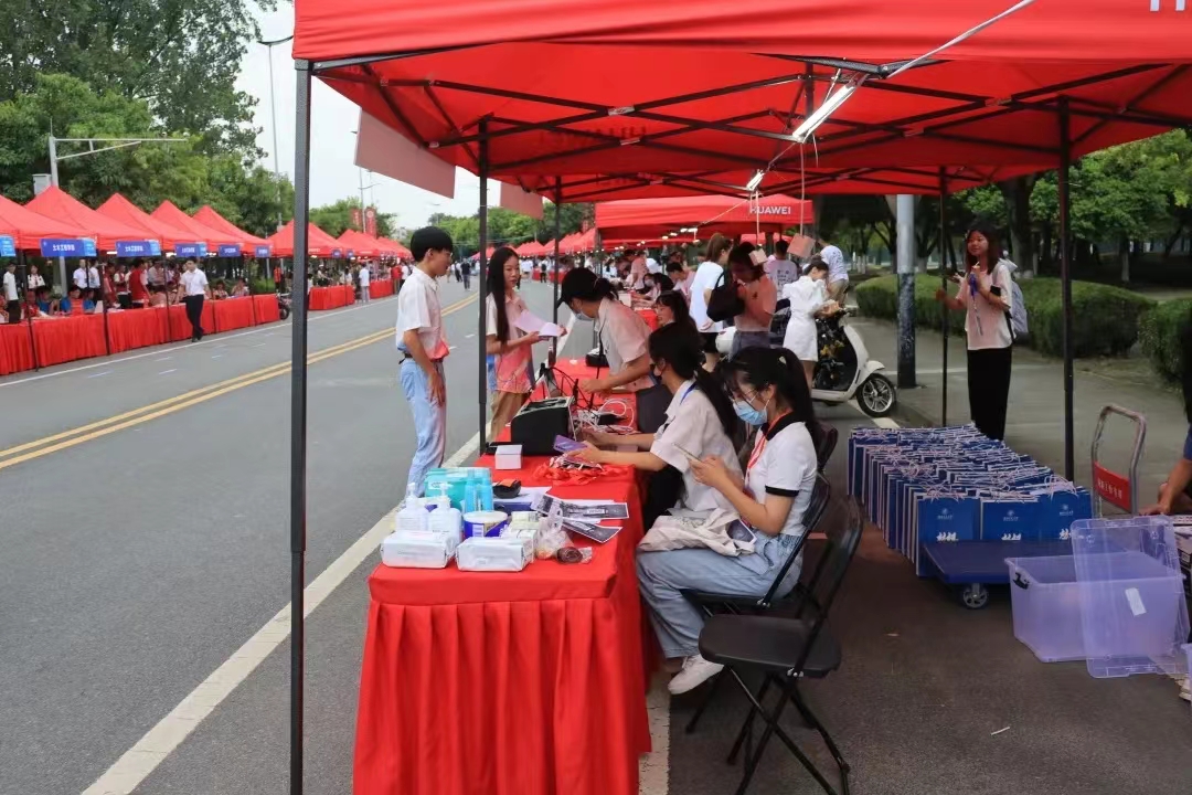 的迎新志愿者们有条不紊地进行各项准备工作,静候新生们到来。