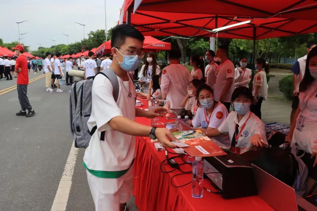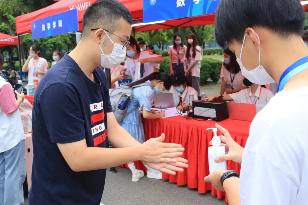 上午8时,随着第一批新生踏入迎新点,志愿者们便开始热情地引导新生们按规定流程进行报到。为落实疫情防控要求,新生们在志愿者的引导下有序排队进入迎新点,完成信息核验、网上确认、线下确认、物资领取等各项报到流程,随后在志愿者的引领下乘坐摆渡车前往北区宿舍。