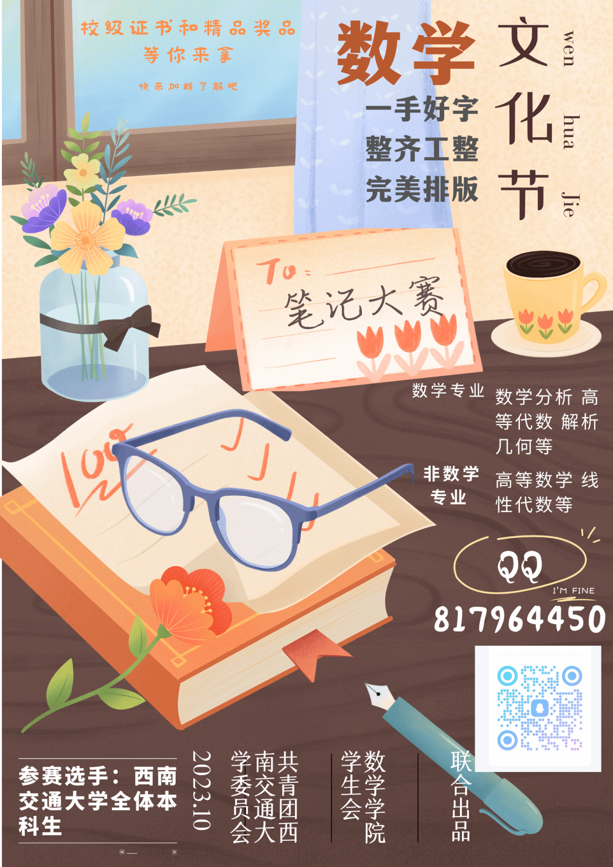 为进一步加强学风建设,发挥优秀数学笔记的模范带头作用,加强同学之间的学习交流,树立良好的学习之风,宣传优秀学习榜样,夯实学科基础,形成学数学、懂数学、爱数学的良好氛围。传承“严谨治学,严谨要求”的交大传统,增强同学们数理强国的信念,特举办网飞猫