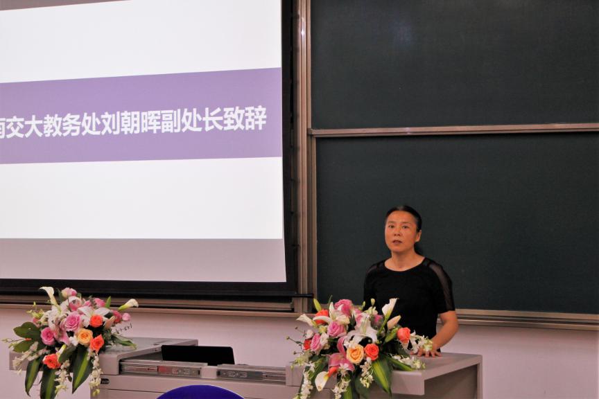 教务处刘朝辉副处长代表校方致辞。刘处长为大家介绍了出席本次活动的来宾并代表校方对莅临开幕式的各位领导嘉宾以及参赛的各位同学表示了热烈的欢迎。随后,刘处长向大家介绍了交大的历史与发展并祝愿各位同学在比赛中取得良好成绩。