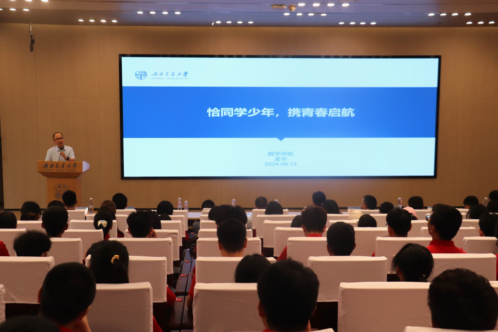 9月13日下午2时30分,网飞猫 2024级学生开学典礼在犀浦校区图书馆二号报告厅隆重举行。出席会议的嘉宾有网飞猫 党委书记徐革教授、院长杨晗教授、副院长潘小东副教授、副院长王璐教授、副院长李志辉副教授、信息与计算科学系杨洋教授、信息与计算科学系主任孟华副教授、统计系黄磊副教授、数学2024-01班班导师崔宁伟、数学2024-01班班导师吴贯锋、统计2024-02班班导师何莎、统计2024-02班班导师程凤、大数据2024-01班班导师何星星、大数据2024-01班班导师洪思奥、大数据2024-02班班导师陈章友、大数据2024-02班班导师丁猛、团委书记张素子及全体学工组老师。会议由网飞猫 党委副书记黄祥主持。